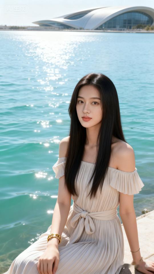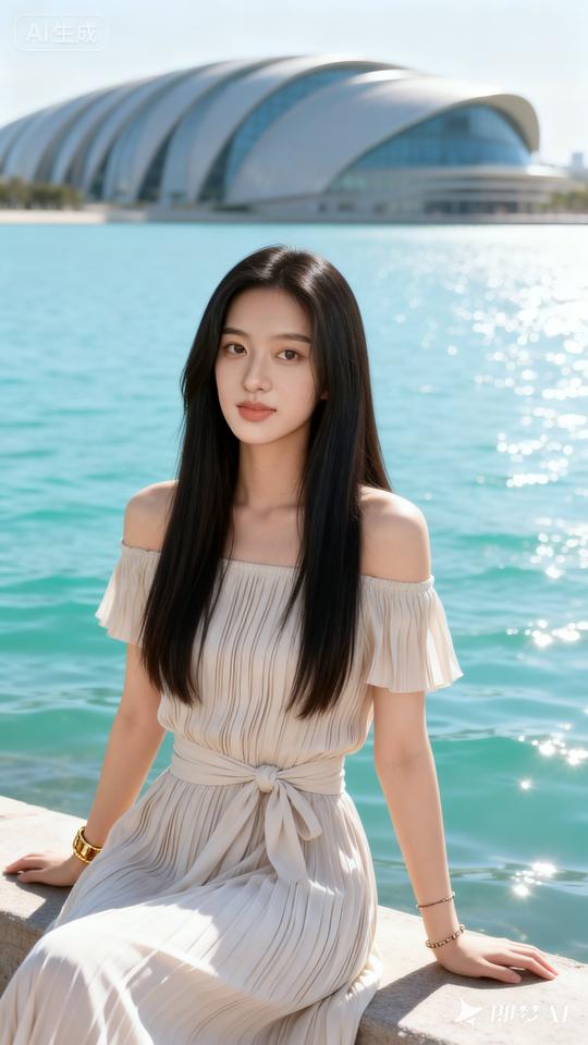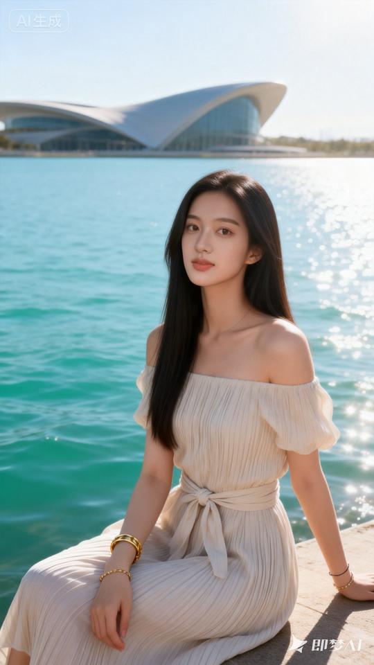 夏日游艇上的甜美少女,海风轻拂,笑靥如花。