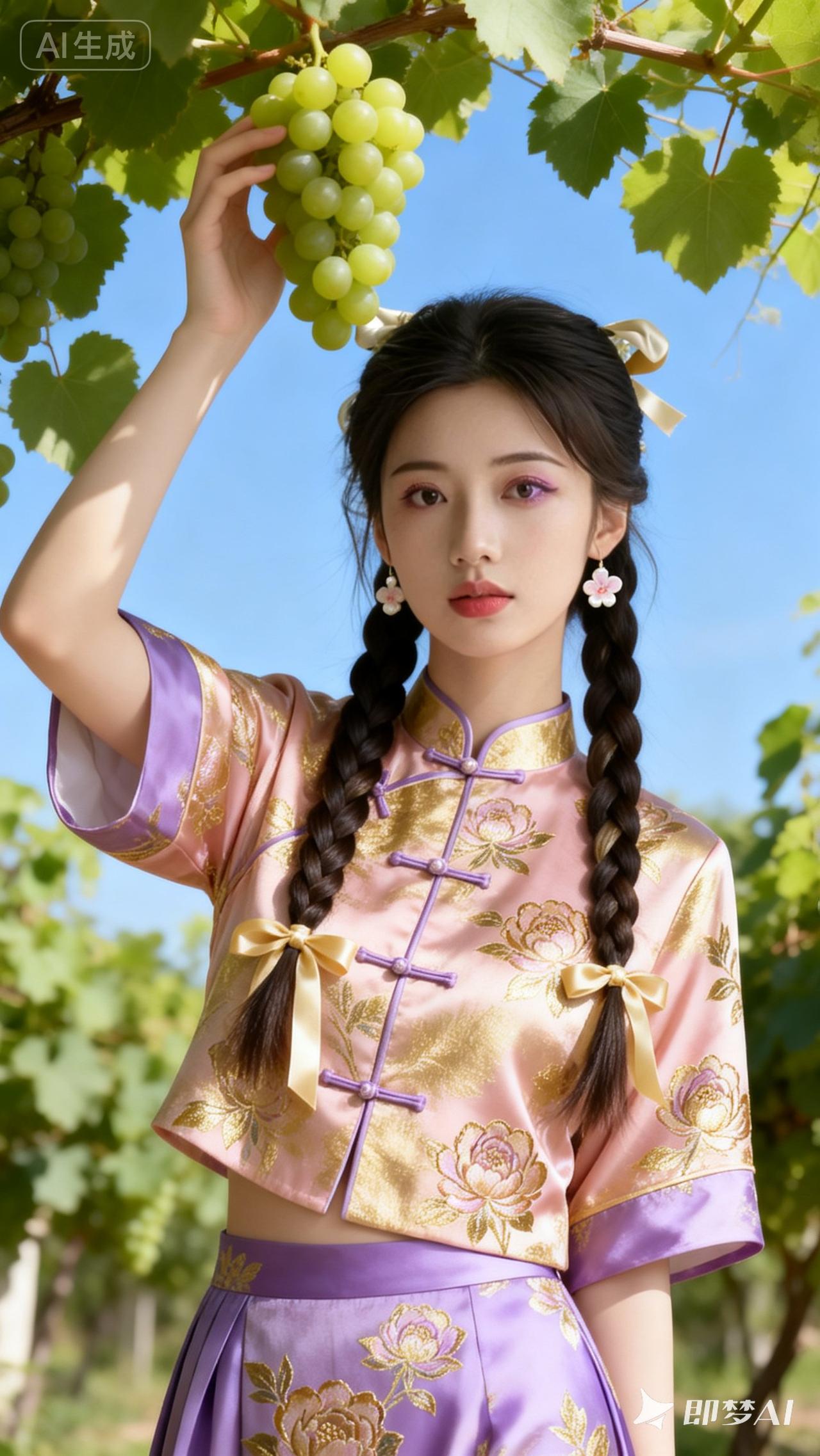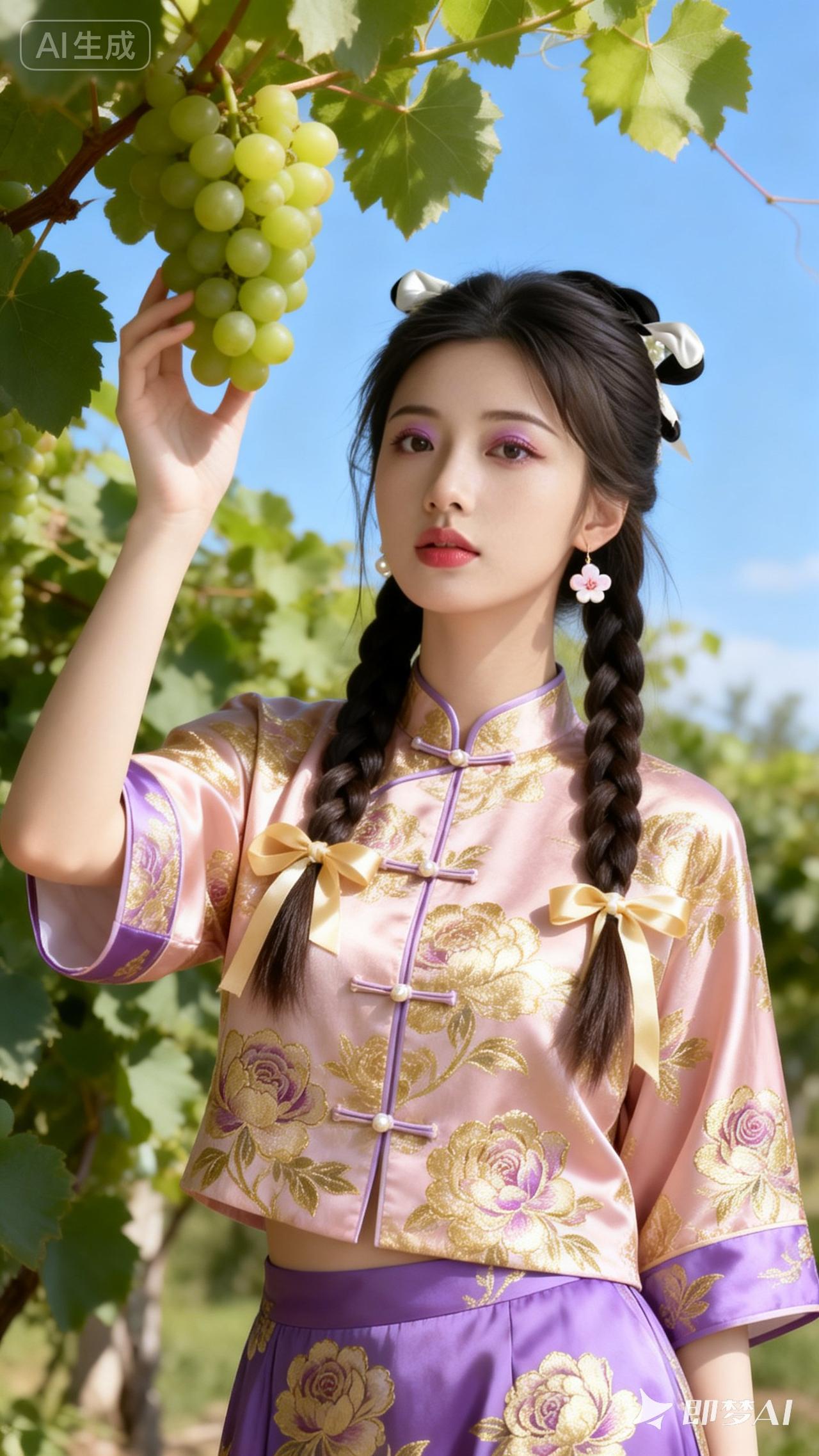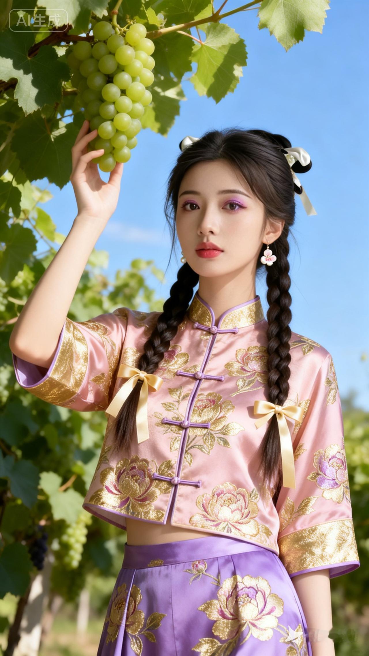 葡萄采摘少女,复古旗袍,清新自然