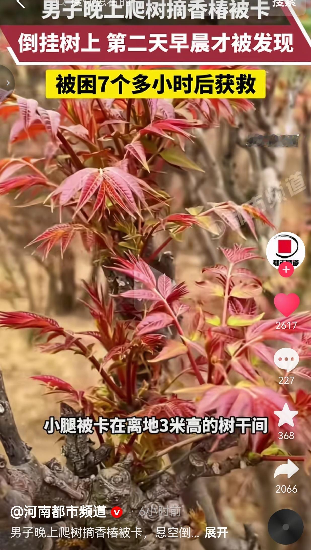 半夜爬树摘香椿,结果倒挂在树上卡了7个小时,这事真的又好笑又后怕