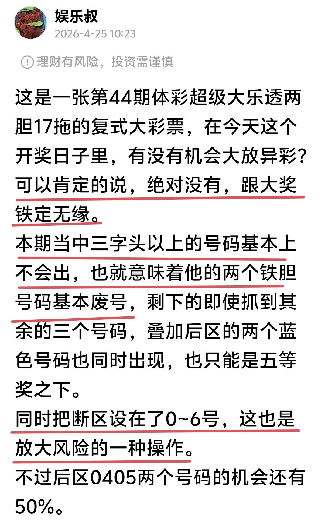 这张大票,果然被娱乐叔不幸而言中,又是一张完完全全的奉献票。 开奖之前,娱乐叔就