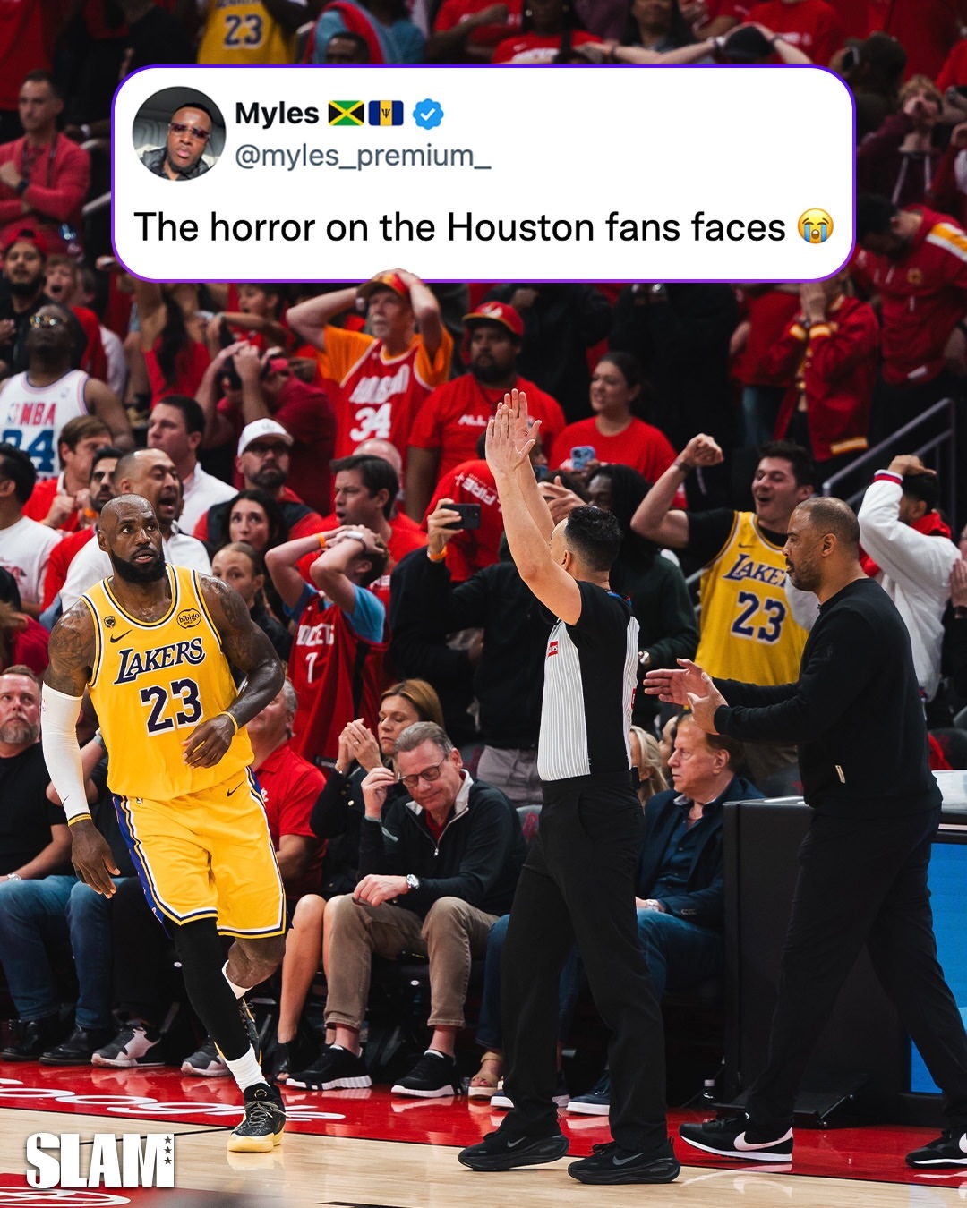老詹绝平三分,火箭主场球员&球迷的反应詹姆斯湖人vs火箭湖人3比0火箭