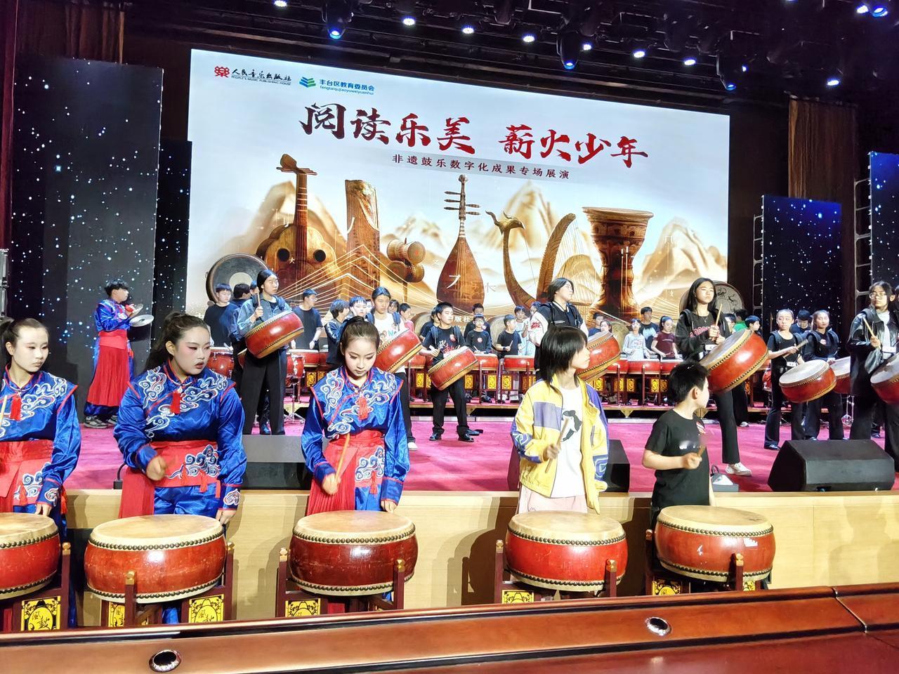 昨天午后回程顺道去了中国出版集团的读书市集,有很多全国知名出版社的摊位,图书的种类丰富处处飘着墨香。市集中还有文化类的文创,丰台区非遗工坊体验区最吸引人。在出版大楼里许多孩子展示着各种非遗内容,我们有幸在礼堂偶遇观看了丰台区《"阅读乐美 薪火少年"非遗鼓乐数字数字化专场展演》的彩排演出。传统鼓乐与数字化的结合,鼓乐声声,孩子们敲出了传统文化的新生力量。