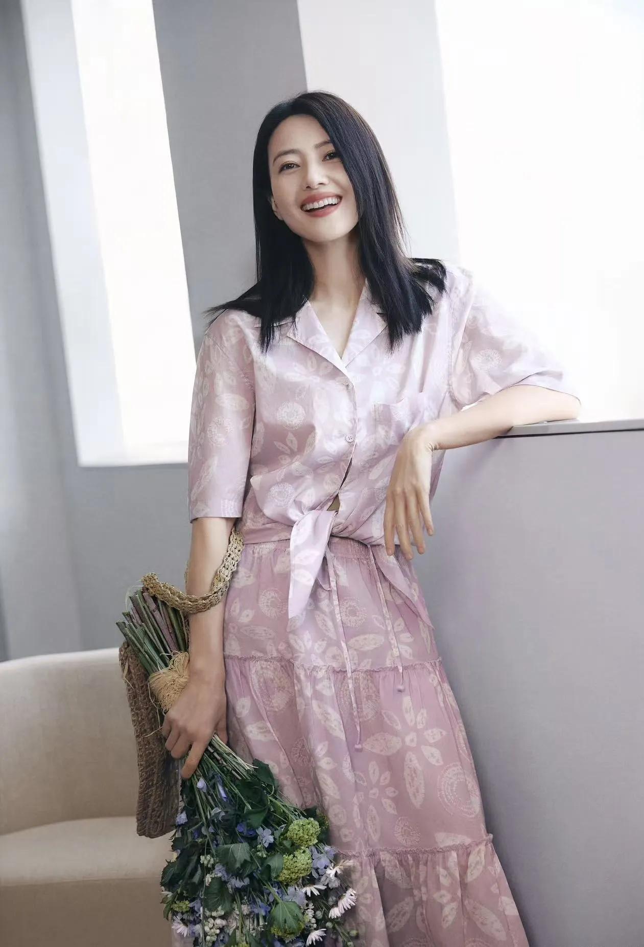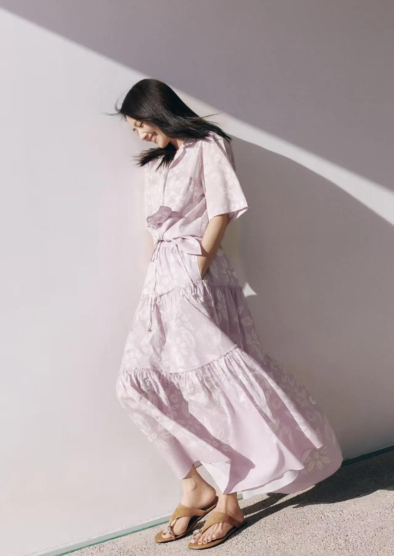 淡紫色印花套装自带温柔滤镜,宽松衬衫配飘逸裙摆,慵懒又自在。腰间结饰巧妙勾勒腰线,不刻意的松弛感被她拿捏得死死的~
