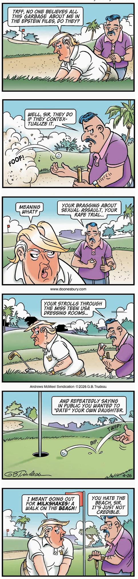 头一次发现《华盛顿邮报》还有漫画,难怪74页这么长,之前都没注意到。而昨天的漫画中有川普和Epstein相关的段子,他竟然公开说过要跟女儿约会(date),属实嘴上没把门😂其发言的可信度本就低了,然而川普还在不遗余力地乱开腔!