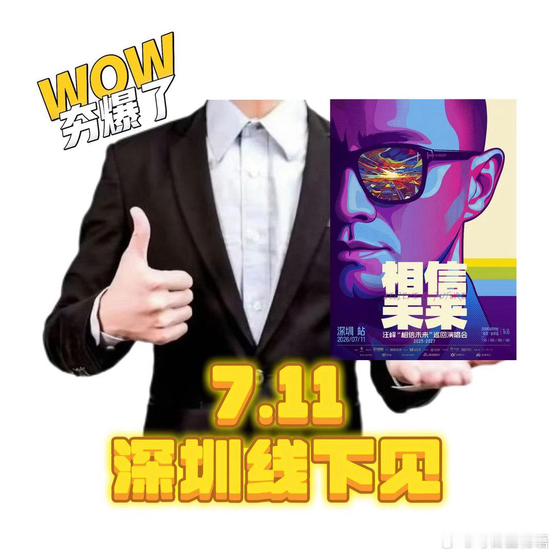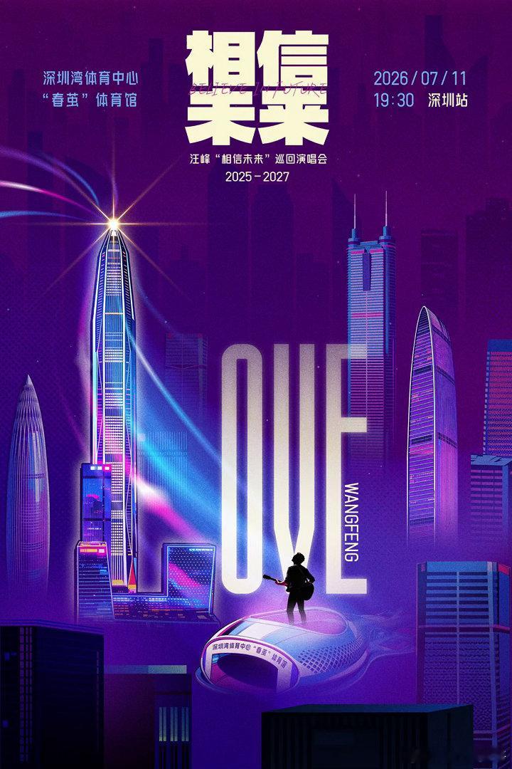 汪峰相信未来巡演 在快节奏的都市里,演唱会是最治愈的集体浪漫。轻社交时代,我们渴望连接,也需要共鸣。“相信未来”巡演深圳定档7月11日。他将用一场高质感现场,回应每一个情绪需求。当熟悉旋律响起,当全场一同合唱,孤独会被温暖包裹,迷茫会被歌声照亮,未来也因此更加清晰!