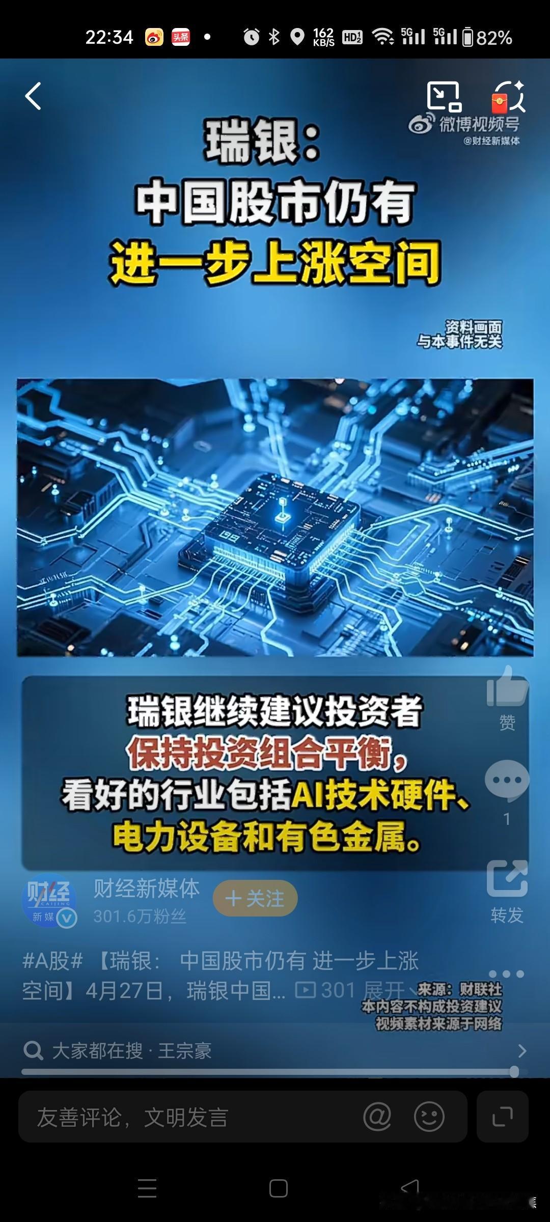 瑞银维持对中国股市的乐观立场,建议投资者保持投资组合的平衡,最看好的行业包括AI技术硬件、电力设备和有色金属。