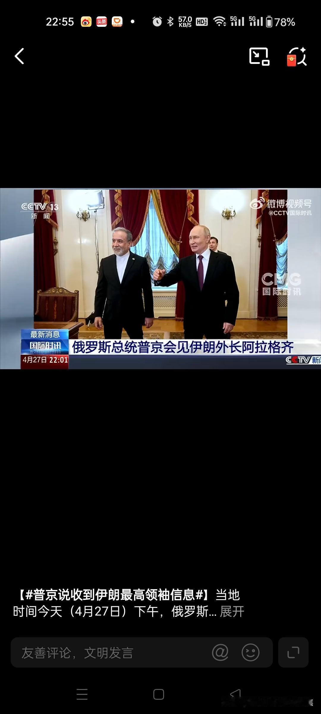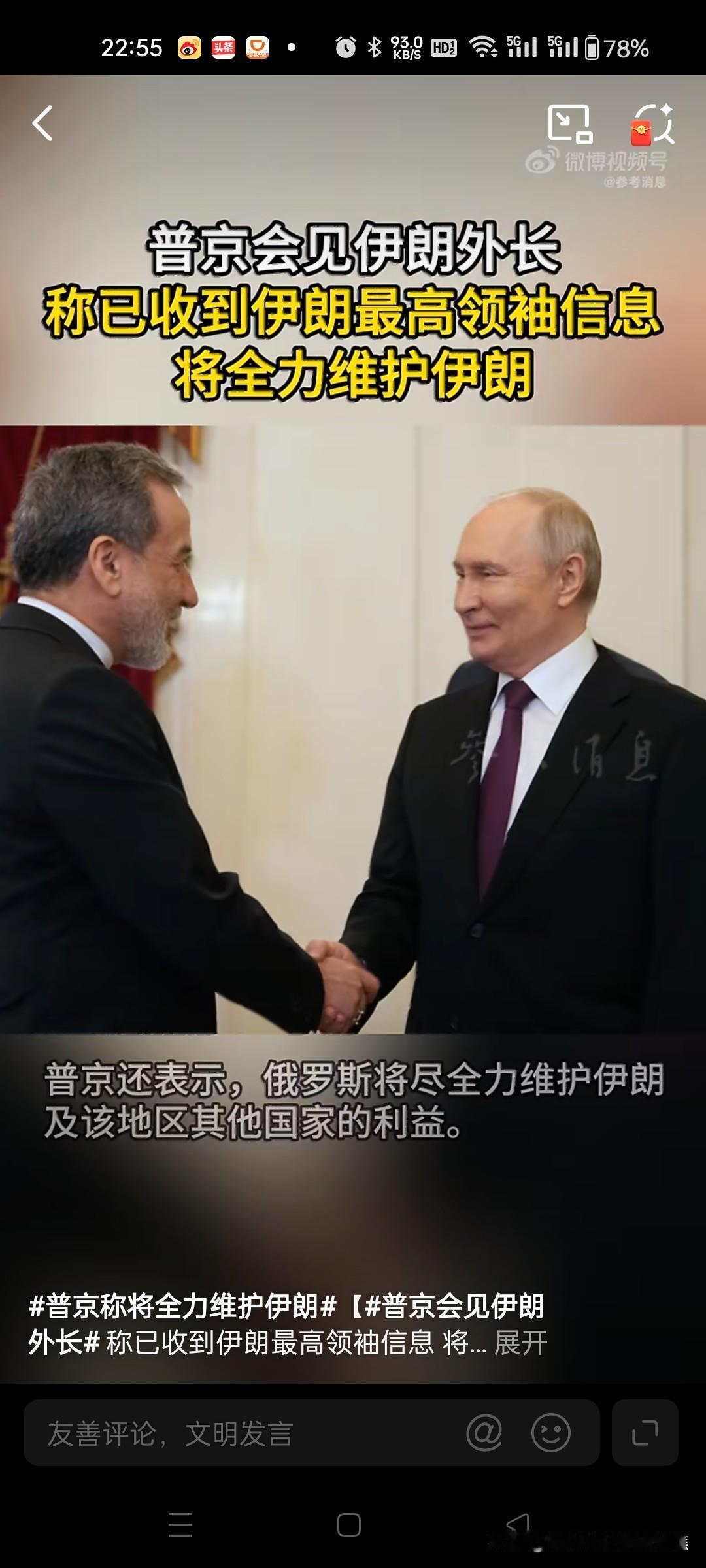普京是在会见伊朗外长阿拉格齐时作出上述表态的,称已收到伊朗最高领袖的信息,重申俄伊战略伙伴关系的坚定性。