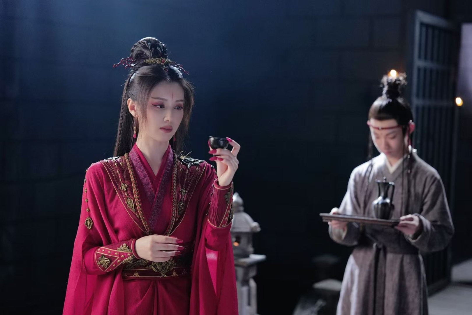王鹤润妆造 姐姐今天妆造氛围感拉满,妆容干净精致、气质温婉灵动,台上认真拍戏,线
