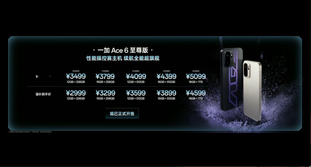 一加Ace6至尊版价格公布了,最低3499起,国补后2999起!这价格你们觉得怎