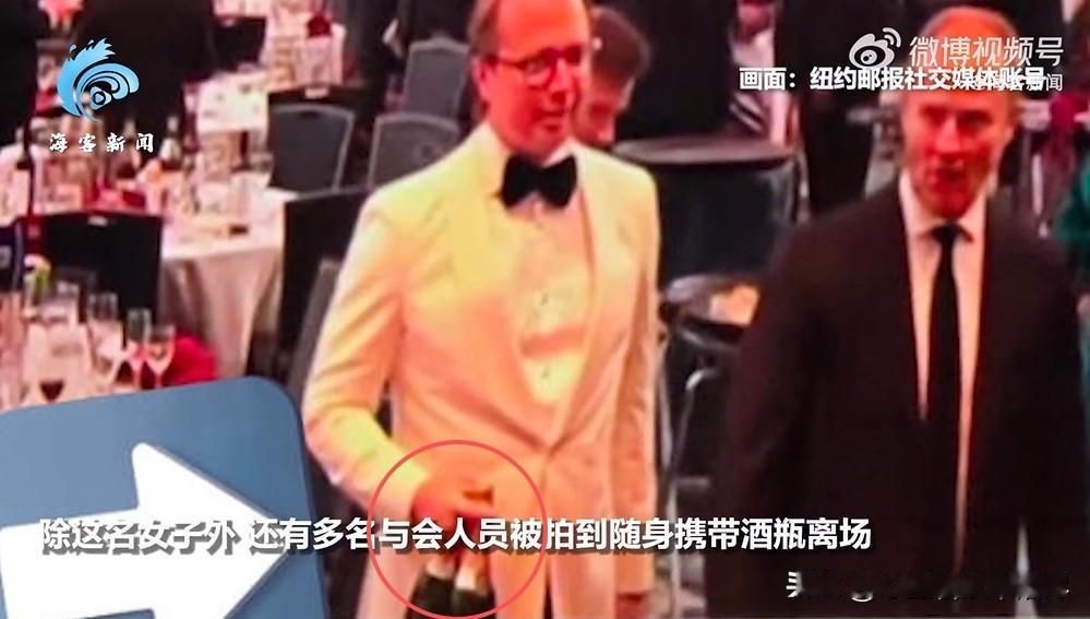 而且后续又有更多细节被扒了出来,有人说,当时现场不止几个人拿酒,不少宾客都顺手拿了一瓶,只是镜头刚好拍到了那几个动作快的。