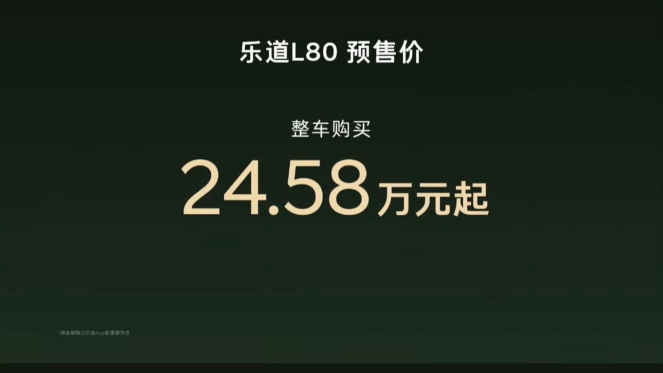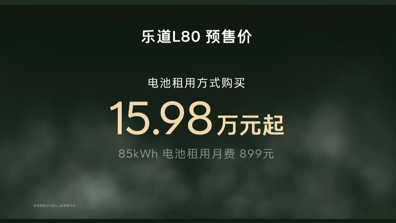 乐道L80预售价24.58万起,租电15.98万起;