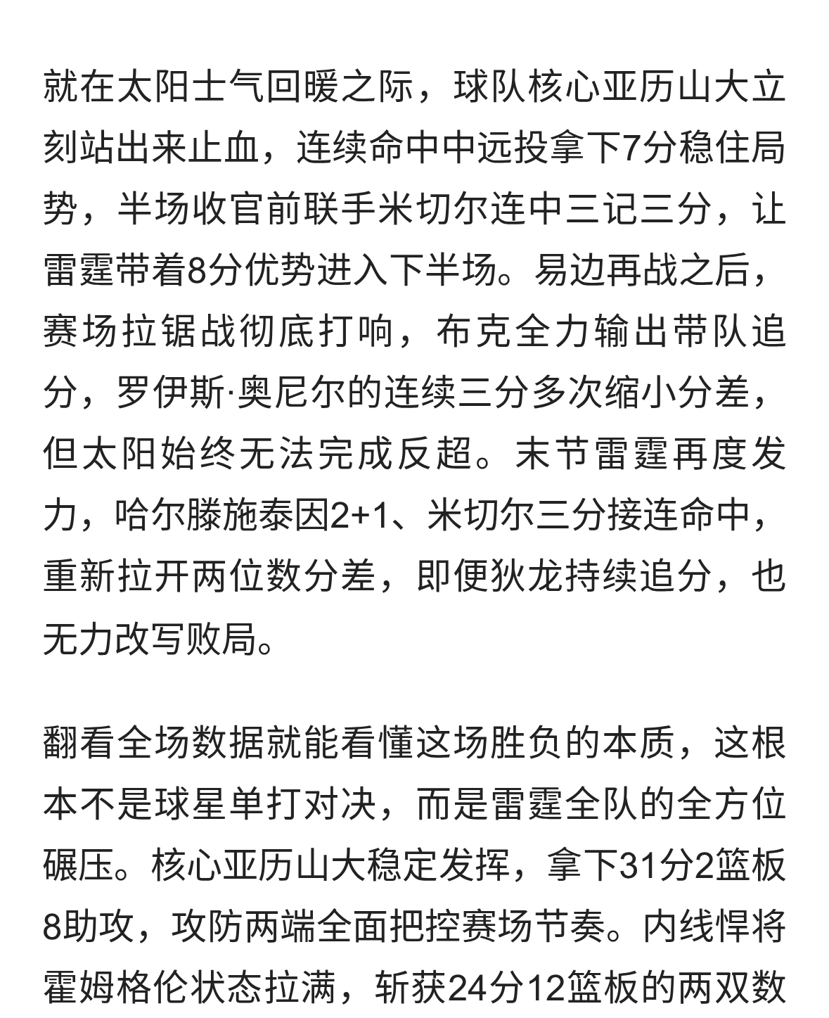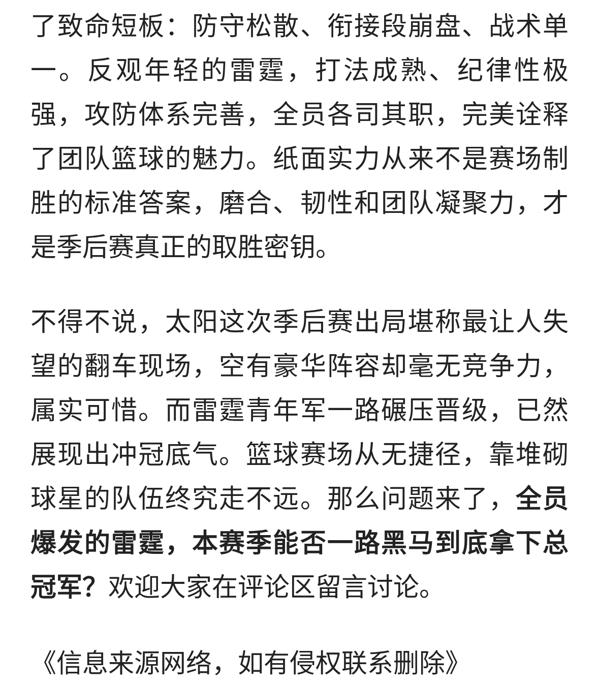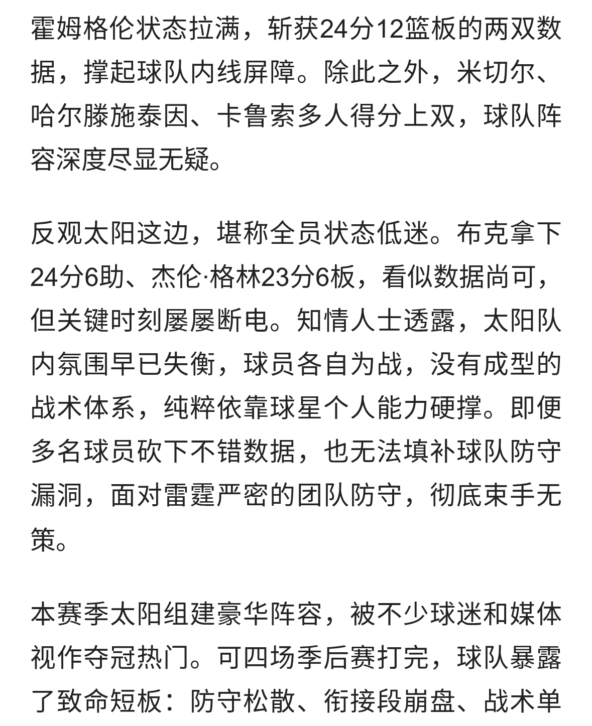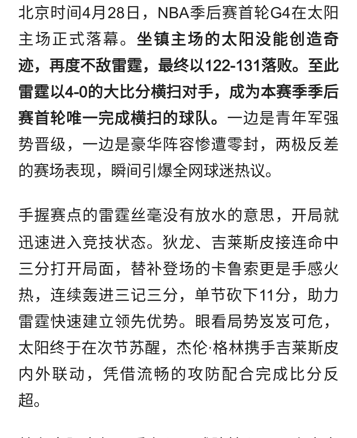 全程碾压!雷霆4-0横扫,太阳四战全败止步季后赛首轮,全队无人救赎