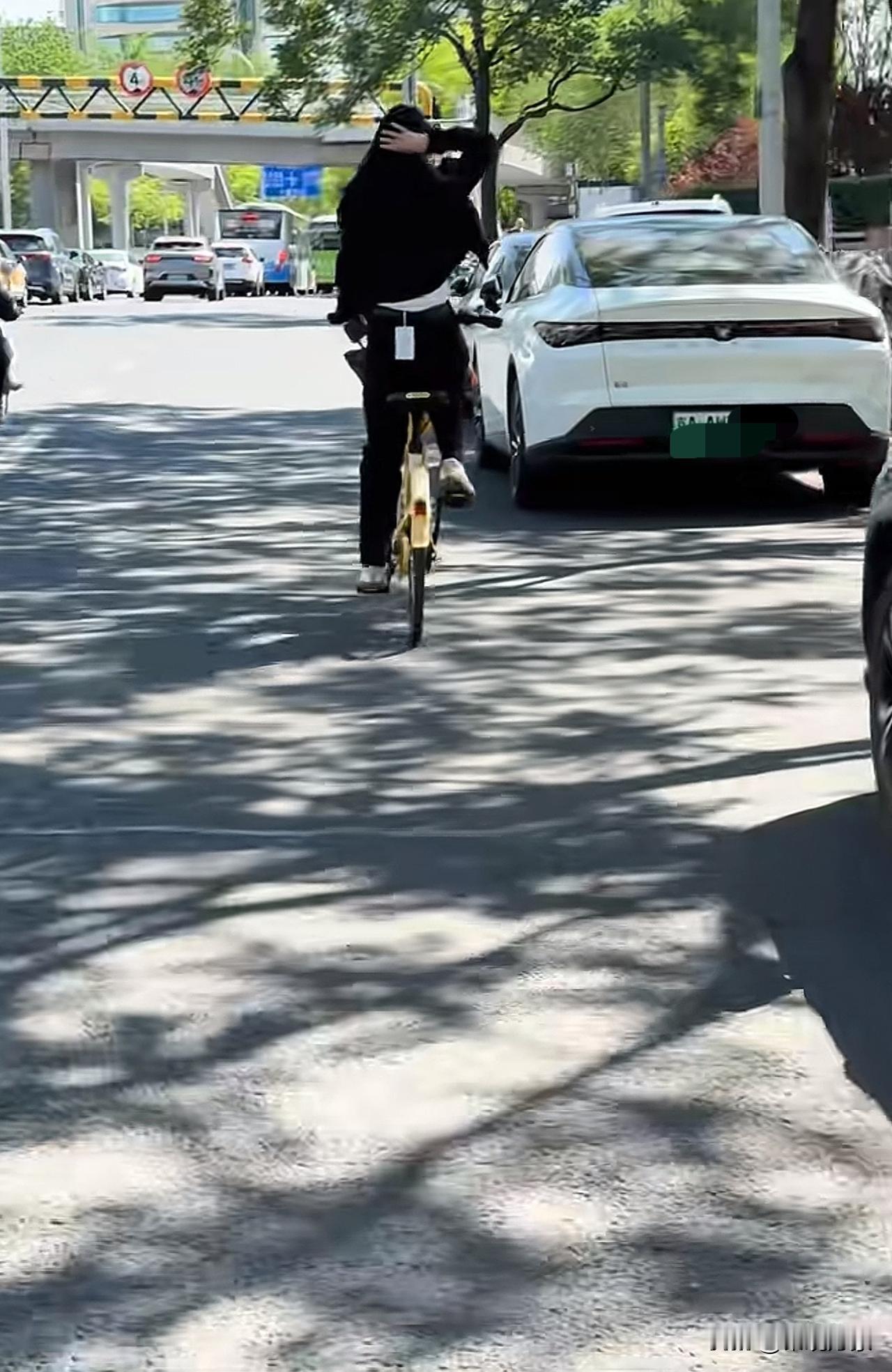 毛晓彤街拍,深色系穿搭好酷!黑色廓形外套松弛又利落,叠穿条纹T恤添了几分复古