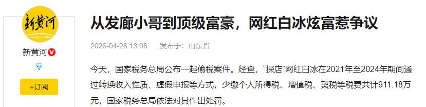 发廊小哥逆袭成 4000 万粉顶流,偷税 911 万被罚 1891 万!白冰的暴