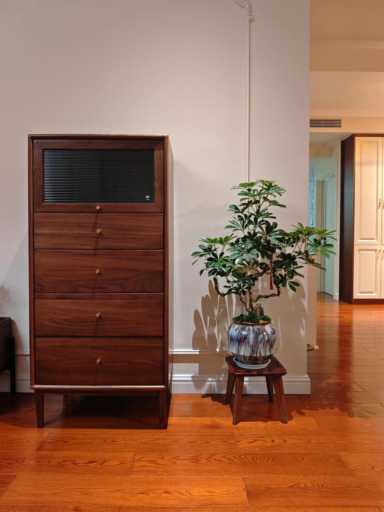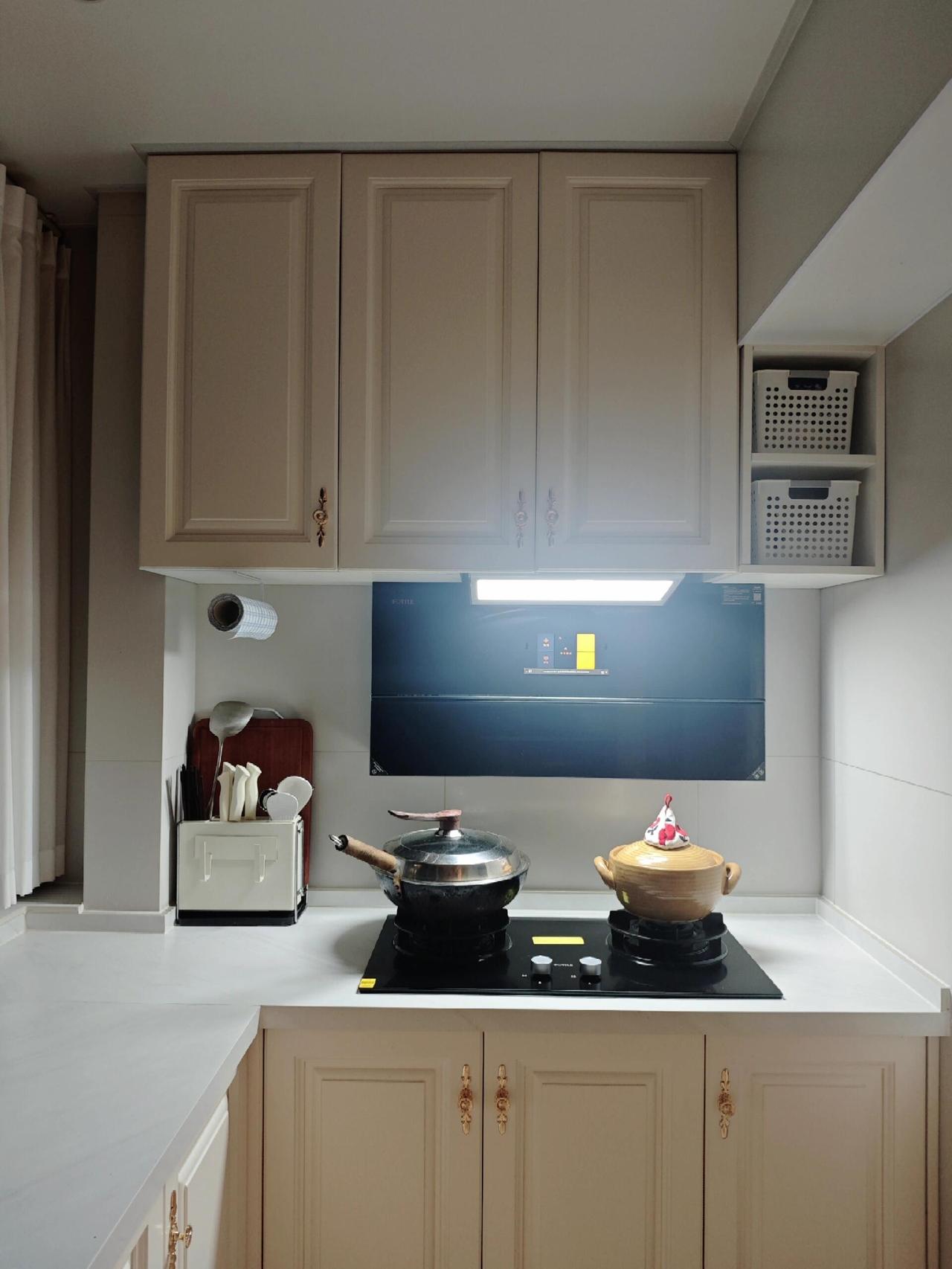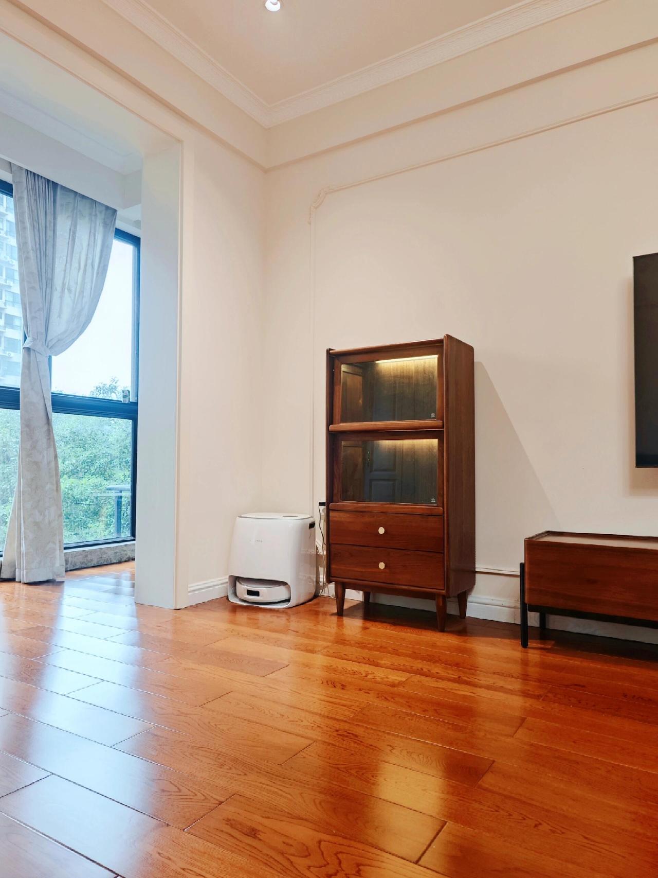 收纳上面花了点心思,柜子要么顶天立地,要么做高脚,底下拖把一伸就完事——以前那种落地柜底下积灰又不好扫,实在被折腾怕了。