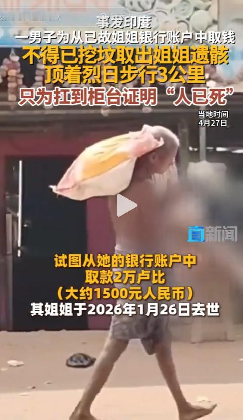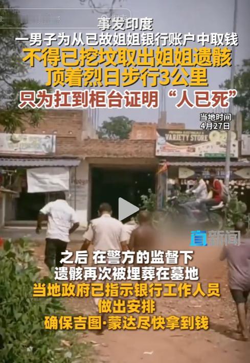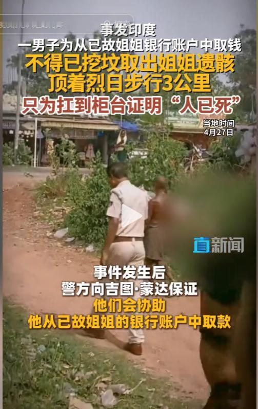 印度40℃烈日下,一名50岁男子竟扛着一具白骨化遗骸,徒步3公里闯银行,把遗骸狠
