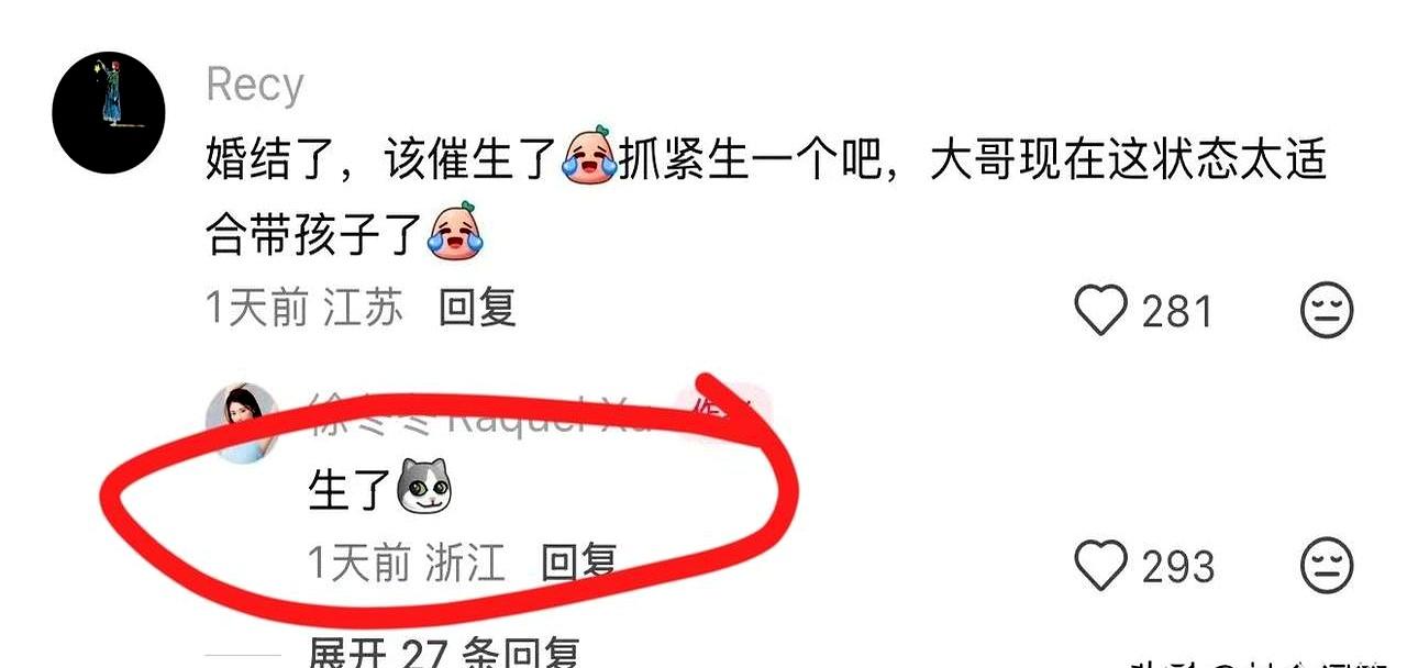 网友一催生,她直接回复“生了”,还说是一对宝宝,叫“小椰子”。