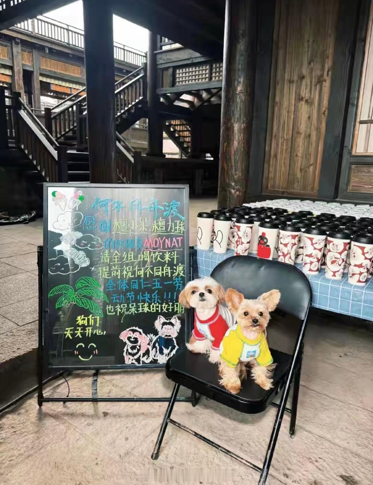 檀健次家的呆球好有面儿啊高奢 Moynat 探班呆球请《何不同舟渡》剧组喝饮料了