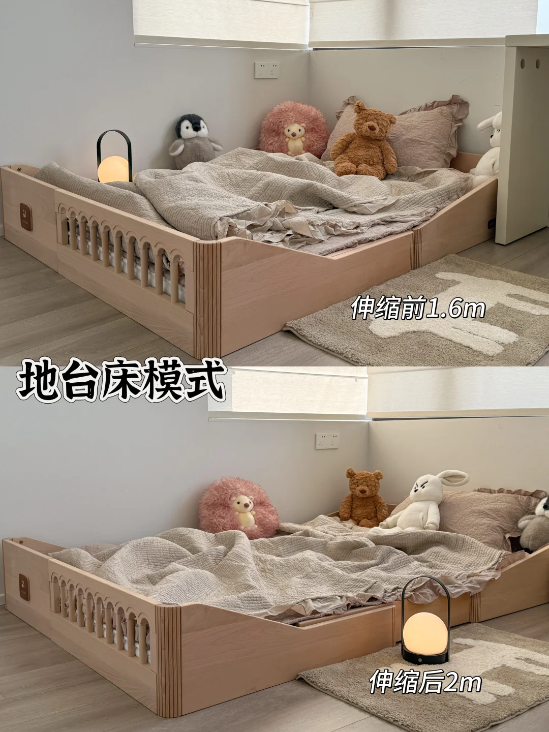 等于是一张床=地台床+儿童床+成人床
