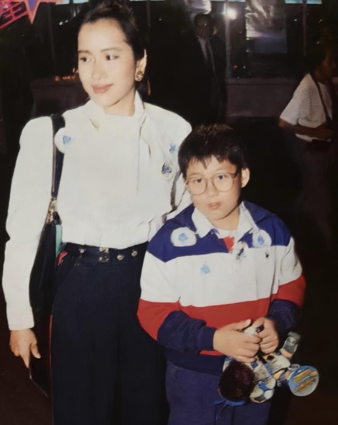 1990年,朱玲玲带着11岁的长子霍启刚,参加电影《忍者神龟》首映礼。