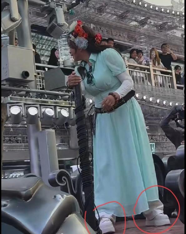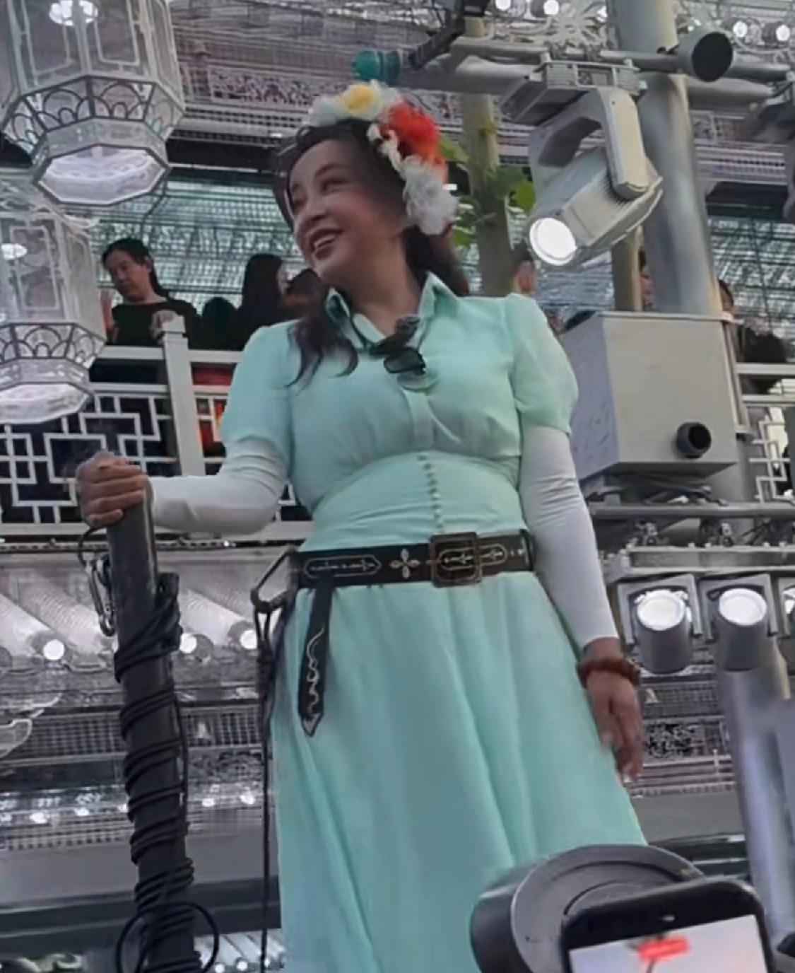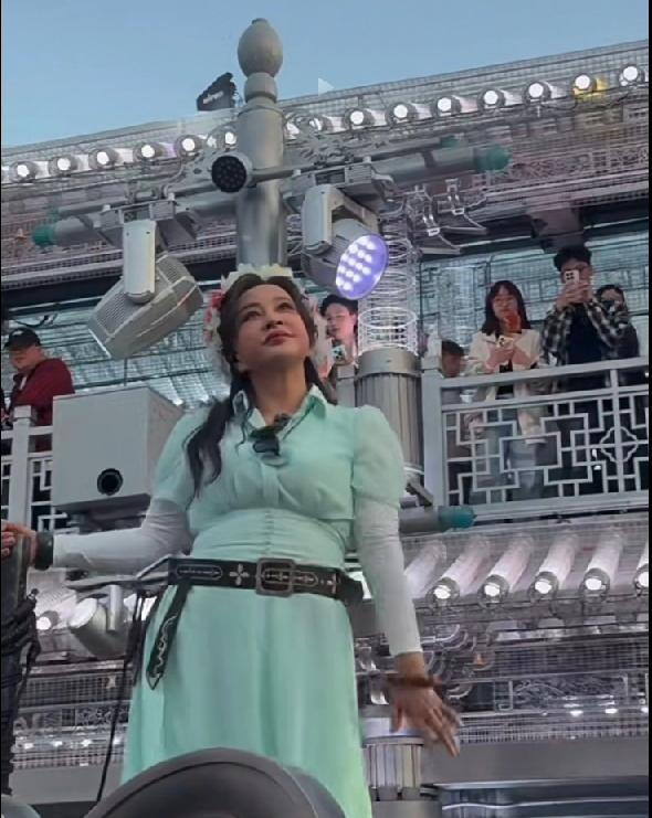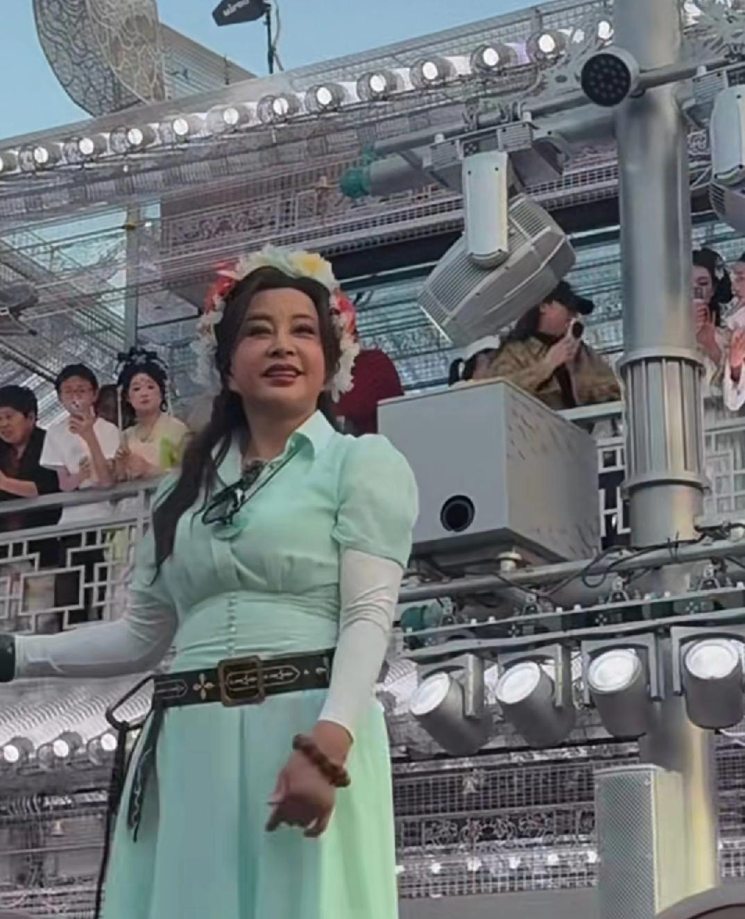 真的佩服刘晓庆,75岁了,在洛阳万仙山还穿这样的绿色紧身裙,显得膀阔腰圆,腰带勒的紧紧的,更显得那小腹隆起,头上还带了一头的鲜花,小白鞋的鞋底足足有十公分高。在台上扭捏腰肢,这哪里是一个七十多岁的老太太啊!