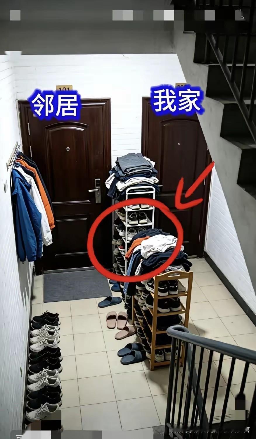 就跟我家邻居样子过道通道什么地方他都堆满了,放鞋架子两个,你还不能说它,说了他天