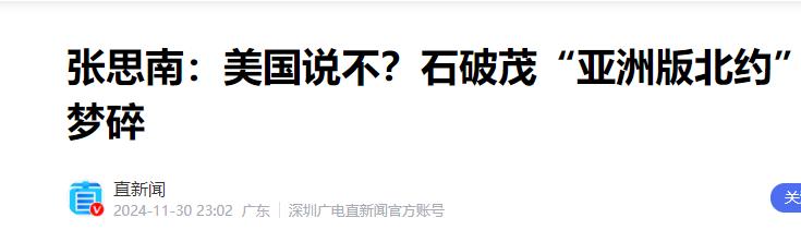 “亚洲版北约”不是新提法,石破茂早就在炒,以前还说要针对中国、部署美国核武器,冷战味十足。