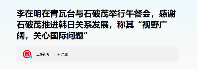 韩国总统李在明亲自设宴,招待的不是现任高官,而是日本前首相石破茂。