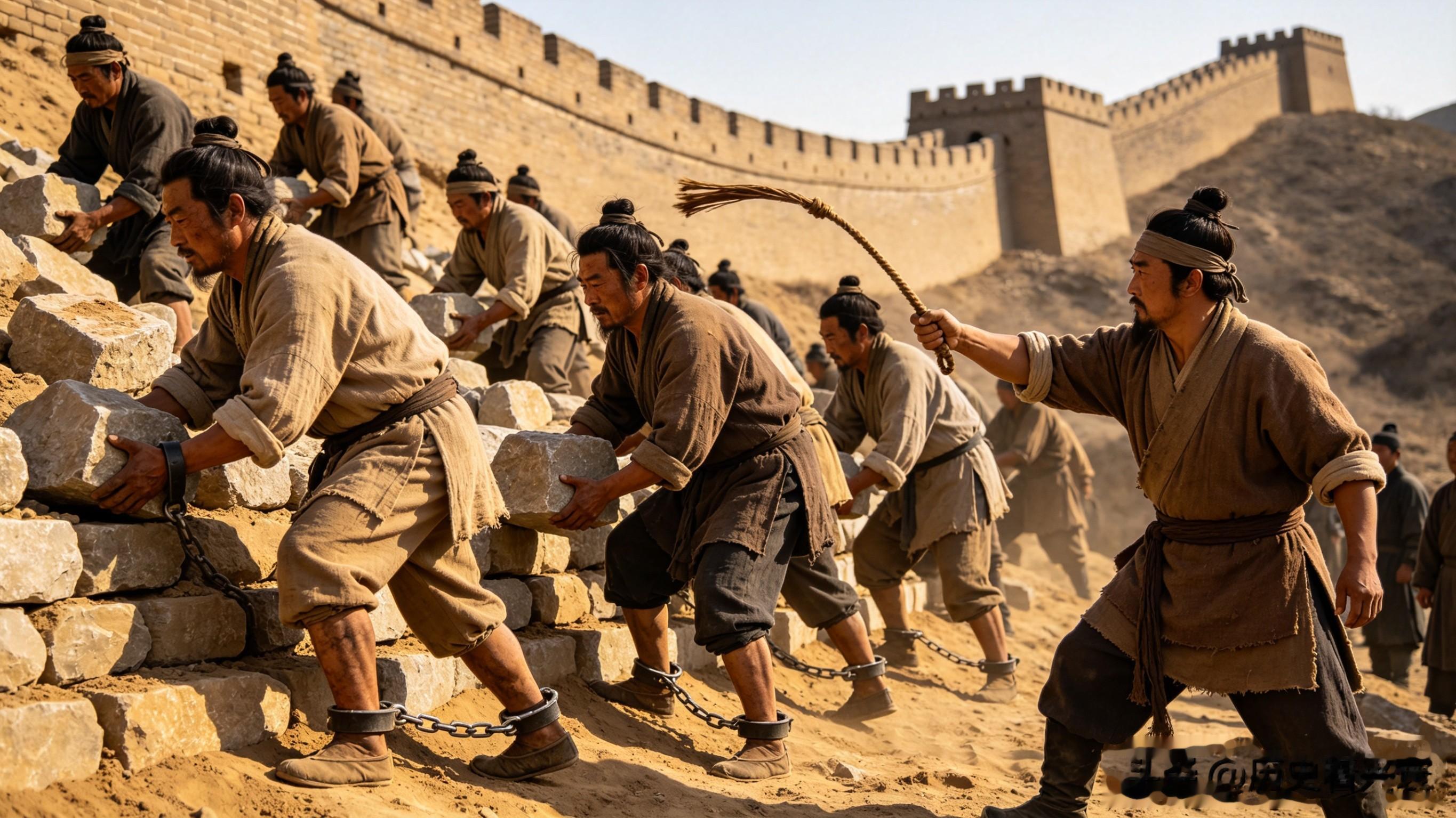 到了秦朝,这种阶级压迫愈发沉重。秦始皇统一六国后,为了巩固统治、彰显皇权,大肆征调民力修建长城、阿房宫、骊山皇陵,动辄征发数十万百姓服役。