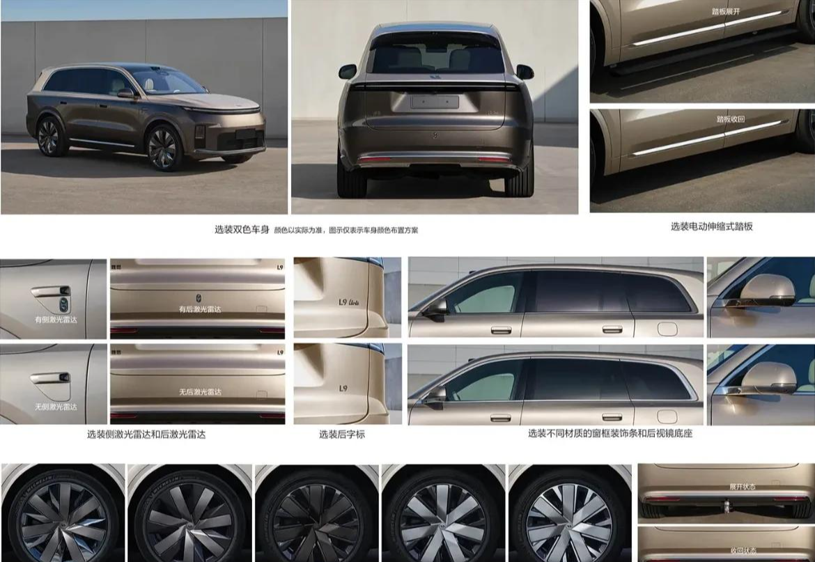 外观方面,理想L9 Livis在辨识度上做了一次相对克制的加法。双色车漆方案放在这个体量的SUV上确实能压住视觉重心,前脸的三色灯语星环与全新矩阵大灯组一改过去相对温吞的观感,科技符号的堆叠开始有了攻击性。个人觉得这套设计语言比现款理想L9多了几分旗舰应有的距离感,但星环灯在多色切换后是否还能保持均匀度和高级感,得看实车工艺的完成度,毕竟灯带色差在户外强光下很容易露怯
