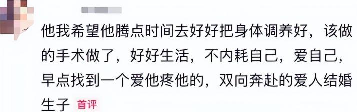 和他一样因为工作身体出问题的艺人不在少数,他的路还长,希望今后他能把健康放在第一位。