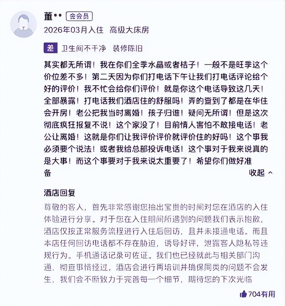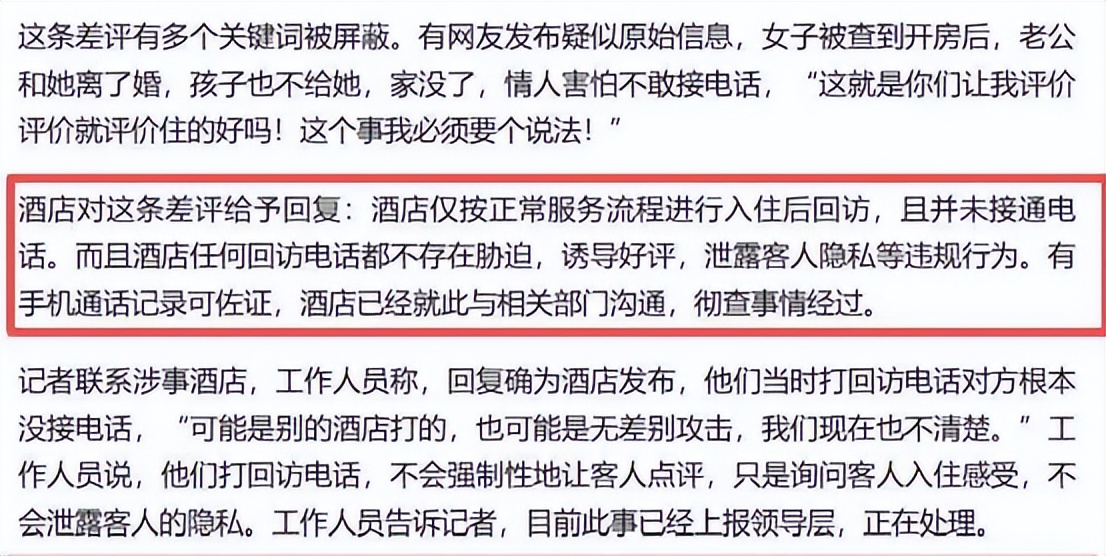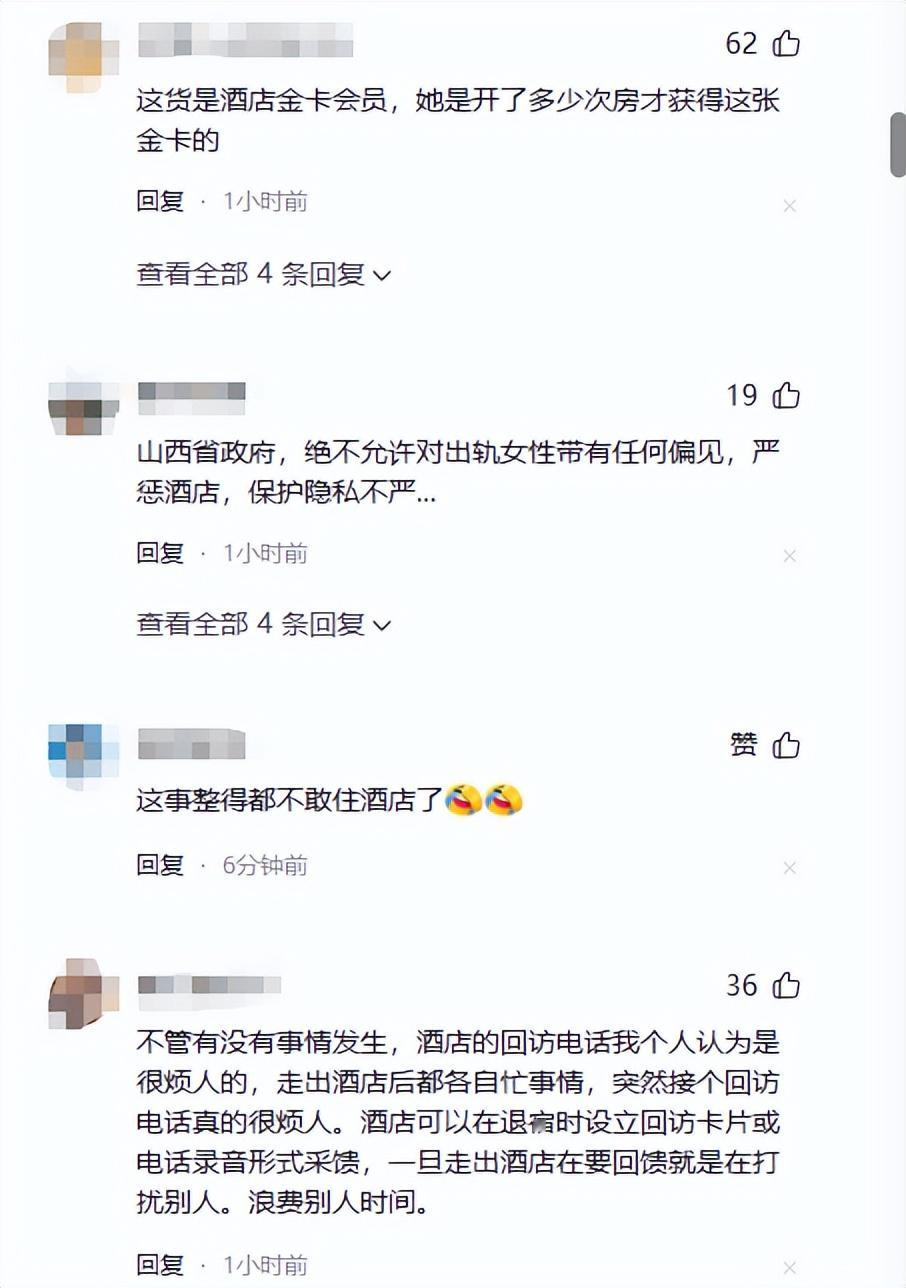 有住客表示,自己每次退房后,都会被酒店的回访电话追着要好评,有时候正在开会、休息,或者开车,突然就接到电话,特别打扰人。
