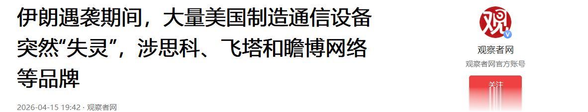 比断网更惊悚的,是 4 月 14 日爆发的数字 “内爆”,伊朗境内大量美制通信设备集体失灵,覆盖思科、飞塔、朱尼珀等品牌的核心路由器、防火墙,故障时间与美以空袭伊斯法罕省完全同步。