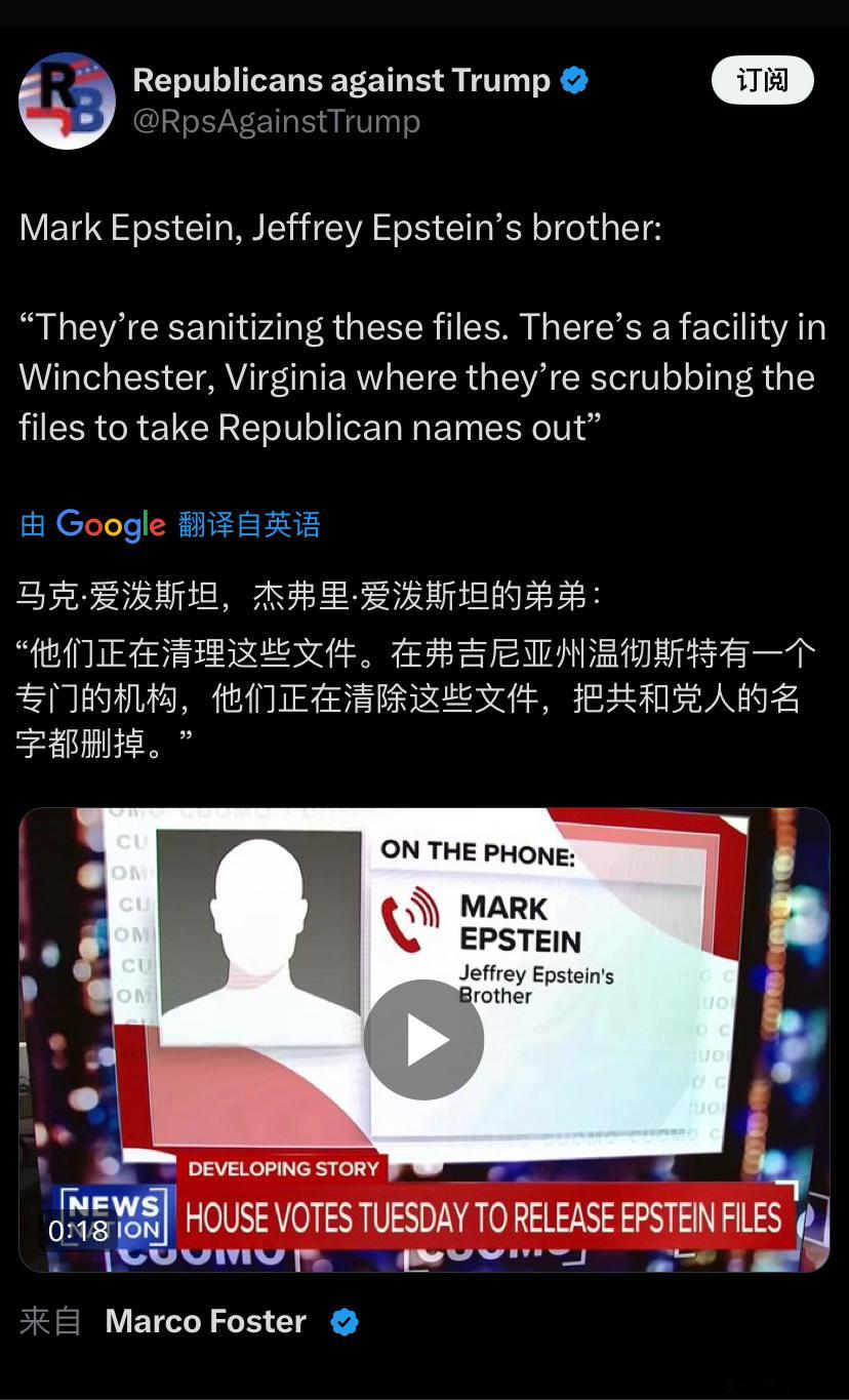 🚨🇺🇸突发新闻:杰弗里·爱泼斯坦的兄弟称,联邦调查局在发布爱泼斯坦档案前对