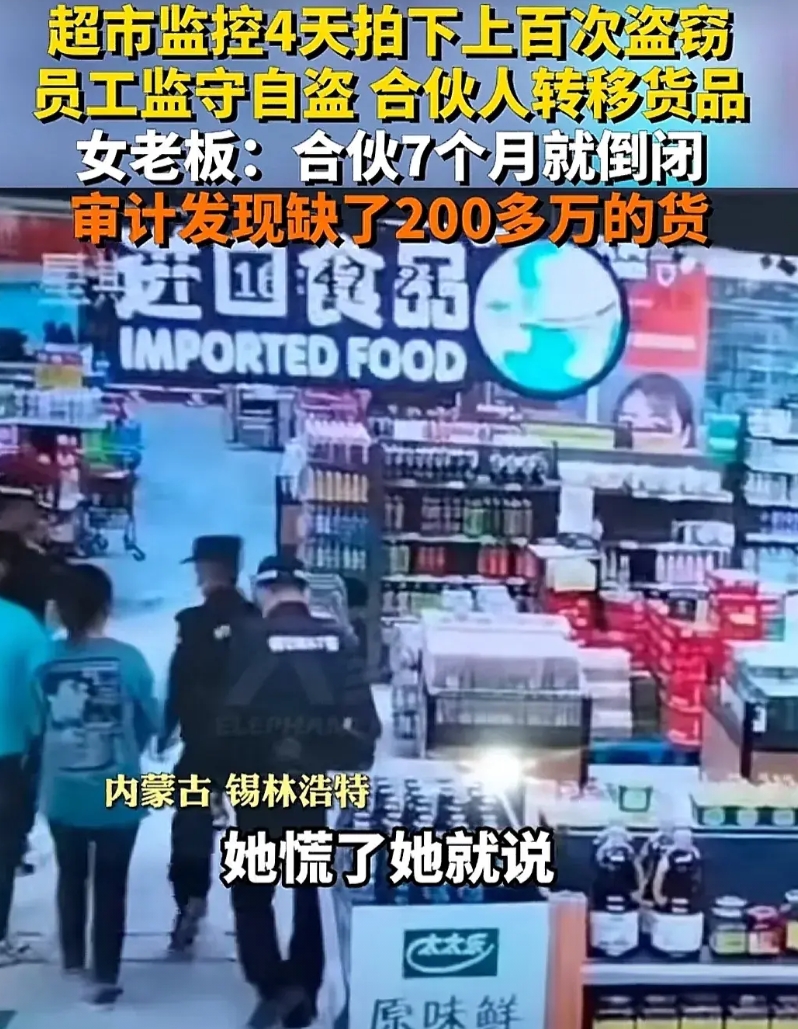 超市员工集体盗窃,7个月就倒闭! 近日,内蒙古锡林浩特一家超市,发现员工监守自