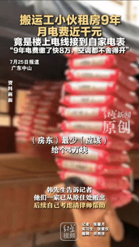"天理何在了!"广东中山,搬运工小伙租房9年,电费每月近1000元,高得吓人!电
