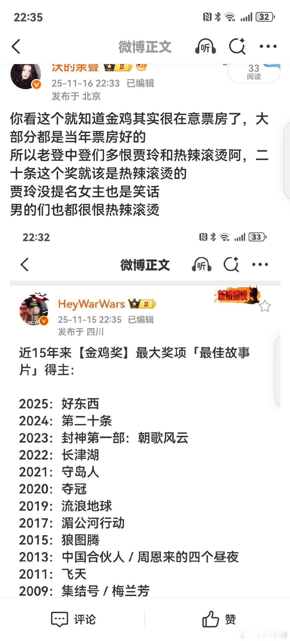 你看这个就知道金鸡其实很在意票房了,大部分都是当年票房好的所以老登中登们多恨贾玲
