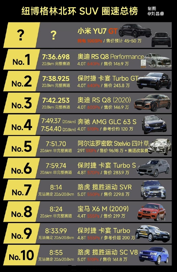 这两个月估计小米YU7 GT的纽北成绩就会出来了,又将会掀起一波纽北SUV你追我赶的热潮。