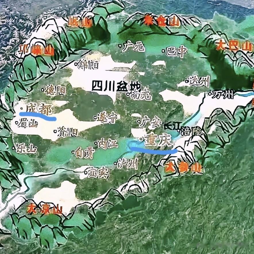 一、盆地山川:四面环山,向心聚水四川盆地北依米仓山、大巴山,东有巫山,南临大凉山,西靠岷山、大雪山、峨山(峨眉山)和巴蜀山。这些山脉如同巨大的围屏,将盆地紧紧环抱,同时也收集了丰沛的降水,化作无数溪流,向盆地中央汇聚。