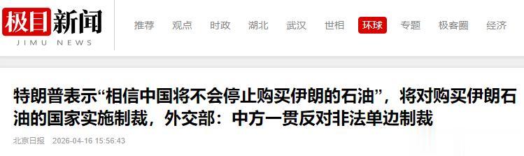 特朗普表示“相信中国将不会停止购买伊朗的石油”,将对购买伊朗石油的国家实施制裁,外交部:中方一贯反对非法单边制裁——极目新闻