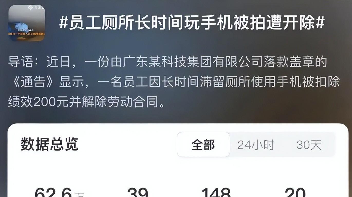 员工在岗如厕久玩手机,被扣绩效还直接开除,更离谱的是公司贴出无码私密照片示众,后续官方回应更是越洗越黑,瞬间点燃全网怒火,背后职场真相值得所有人深思。
