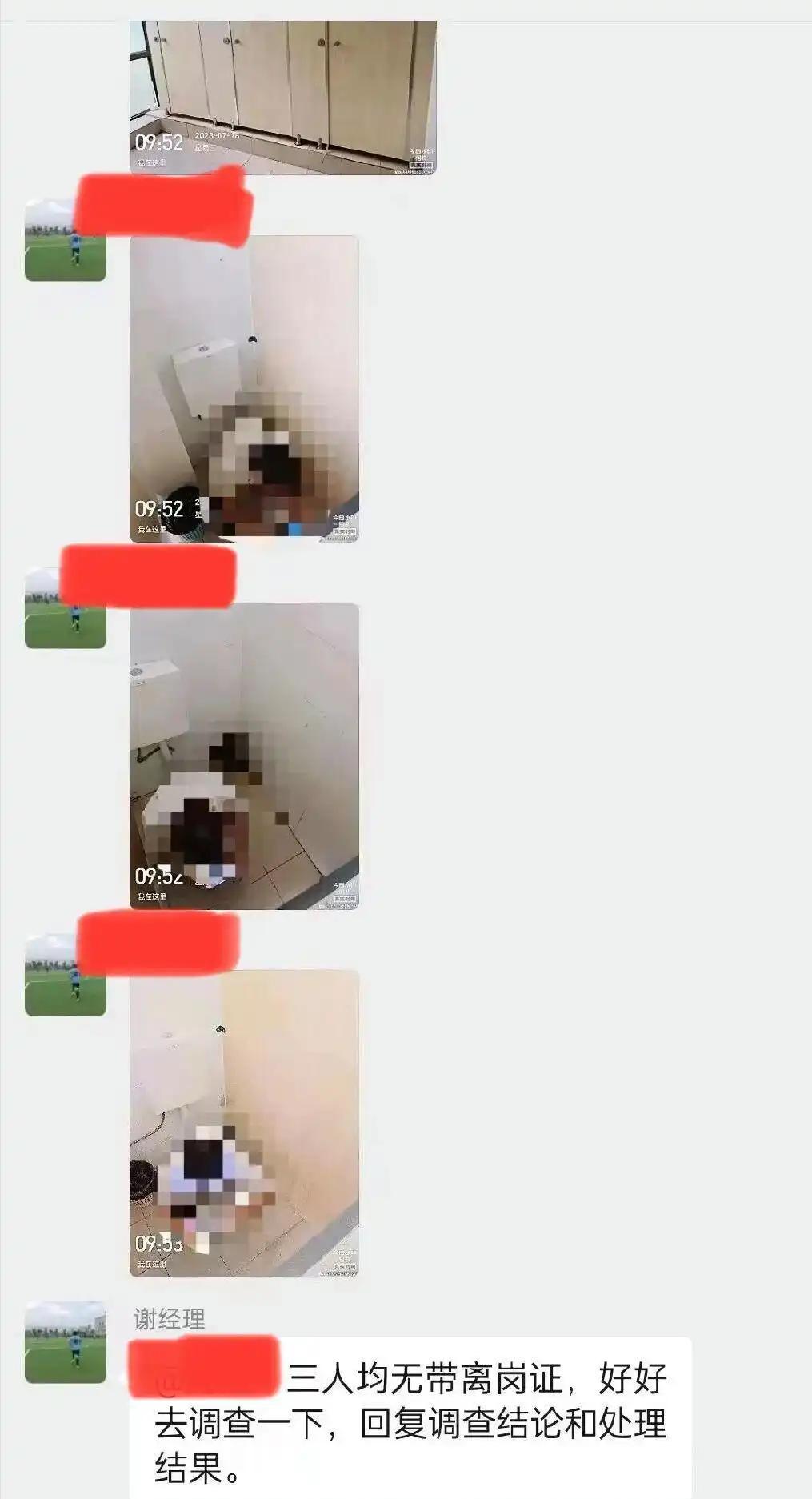 事发当天,管理人员多次全域寻人无果,最终听见卫生间内传出游戏音效,情急之下直接俯身贴近厕所门缝,手持手机近距离偷拍取证,全程人工抓拍画面,并非设备监控拍摄。