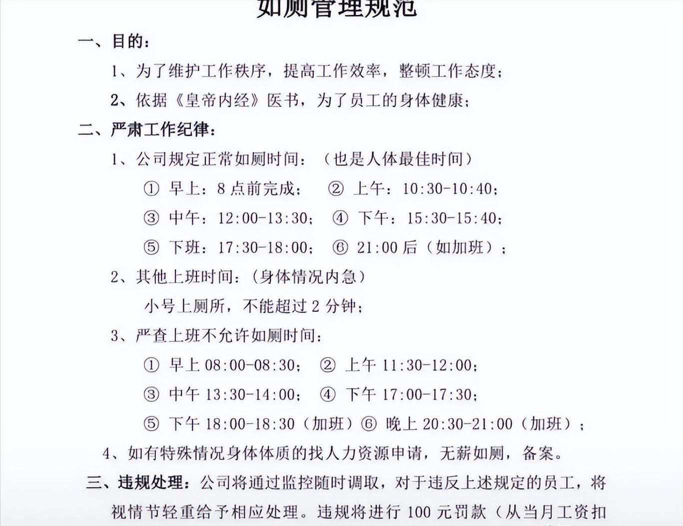 不少网友犀利吐槽,就算是过往违规示众惩戒,尚且会留几分体面、遮挡容貌,这家企业倒好,全方位无死角曝光私密画面,把员工的日常如厕瞬间,当成杀鸡儆猴的反面教材全网传阅,变相逼迫当事人职场社死。
