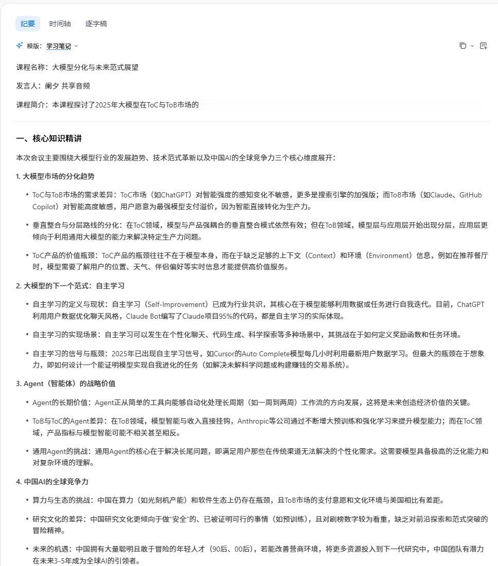 但二八定律是结果,而非原因,真正把用户困在信息围城里打转的,是市面上多数会议产品还在自上而下的流水账式速记里摸索,无法满足真实存在的个性化需求。