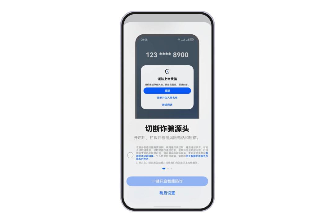 HarmonyOS隐私安全体验再升级,此次HarmonyOS 6.0.0.328 版本更新带来了更进一步的隐私安全保护体验。新增智能防诈功能,用户通过“设置 > 隐私和安全 > 骚扰和诈骗拦截 > 智能防诈”开启后,系统即可为您智能拦截通信、网页、应用等多场景诈骗风险,还能精准识别涉诈环境,对符合诈骗剧本的行为进行阻断并及时提醒,带来更省心的安全守护。