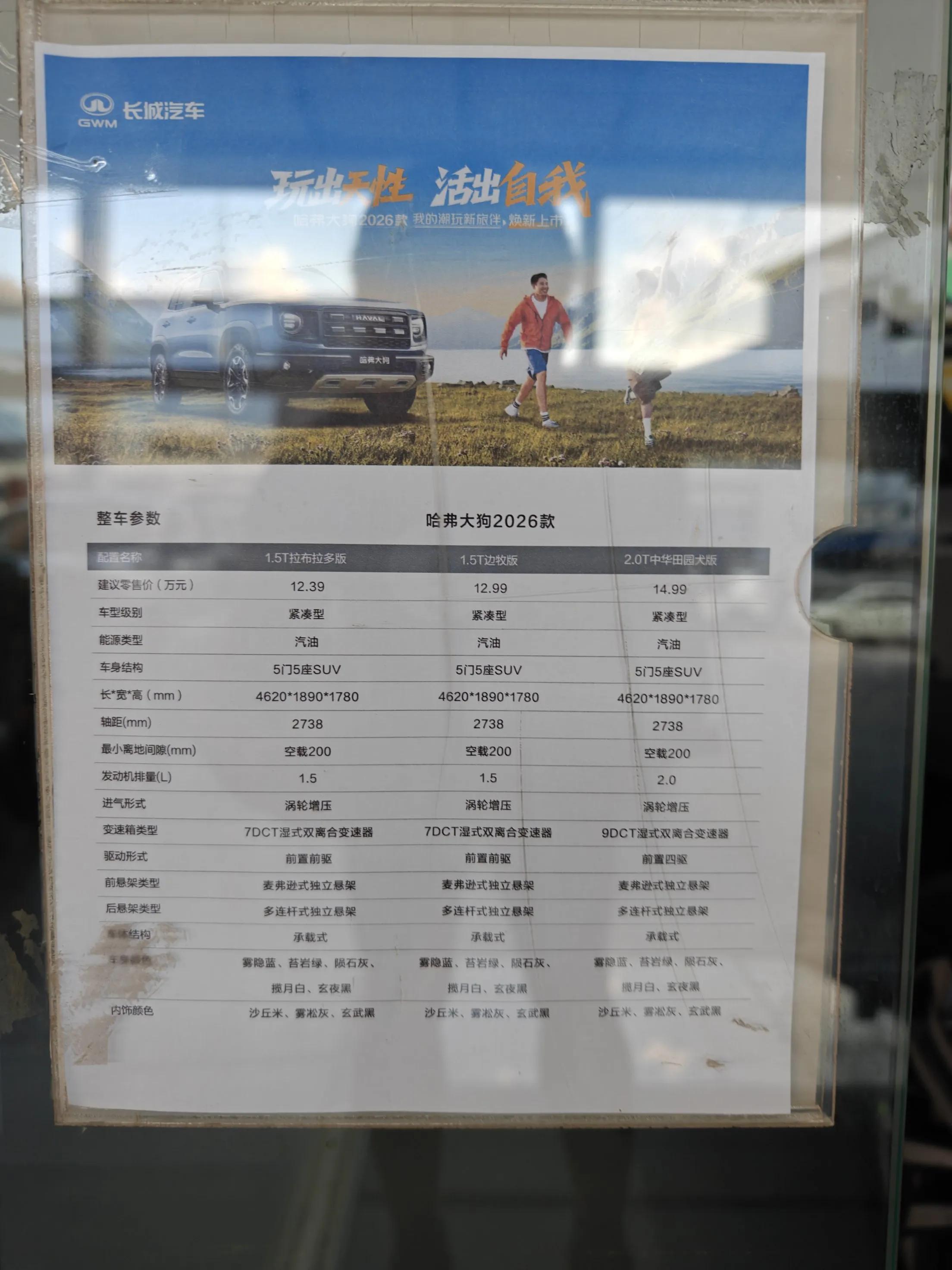 最后媳妇看中了荣放(那个破内饰,要啥没啥,黑乎乎的),说她有朋友可以搞价不少,我退一步,不看混动了,原来我看中的是BYD宋plus,我看油车,但是必须有比较潮流的内饰,L2必须有,雷达还摄像头越多越好!在我俩的反复博弈之下,能达成基本共识的最后看中了博越L锦绣班和26款哈佛大狗边牧版!偶尔回老家,孩子在市里面开得多,还想出去旅旅游,我还在苦逼的考科二!大家帮忙看看哪款更好?