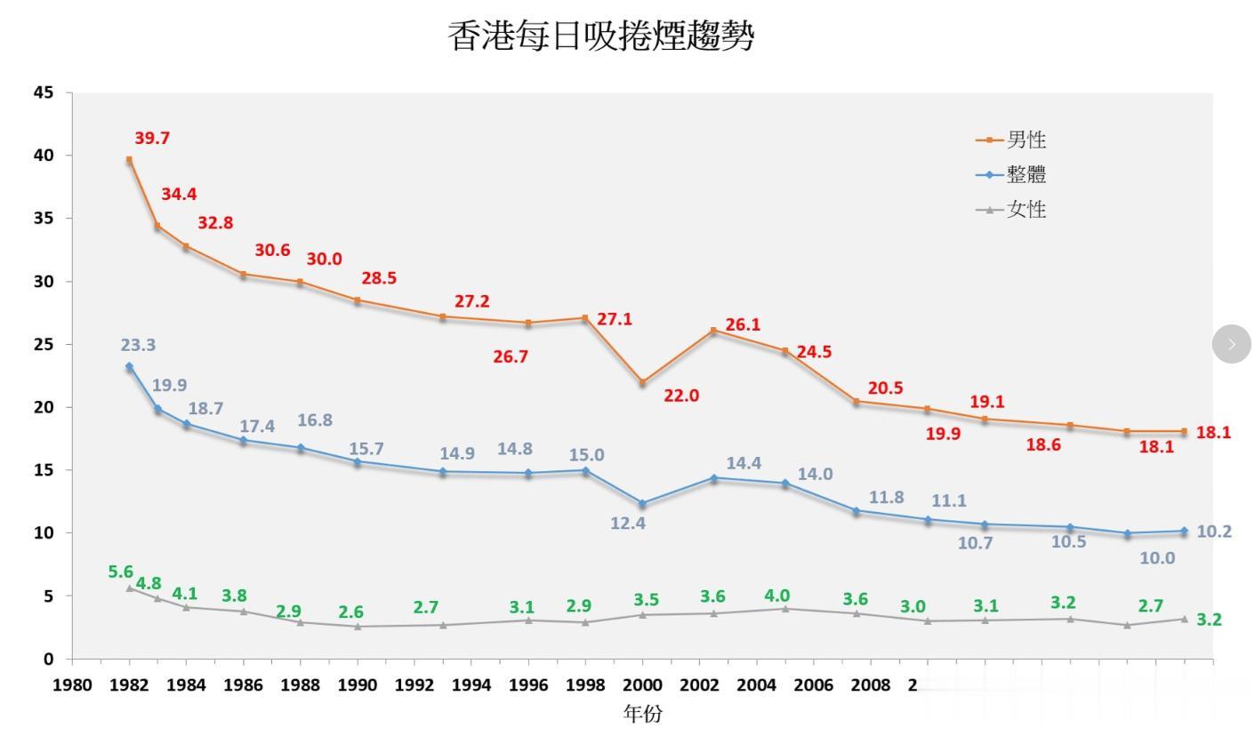 这听起来像天方夜谭对吧?但你去看香港的吸烟率数据,从上世纪八十年代的23%一路降到现在的不到10%,这条曲线是实实在在往下走的。