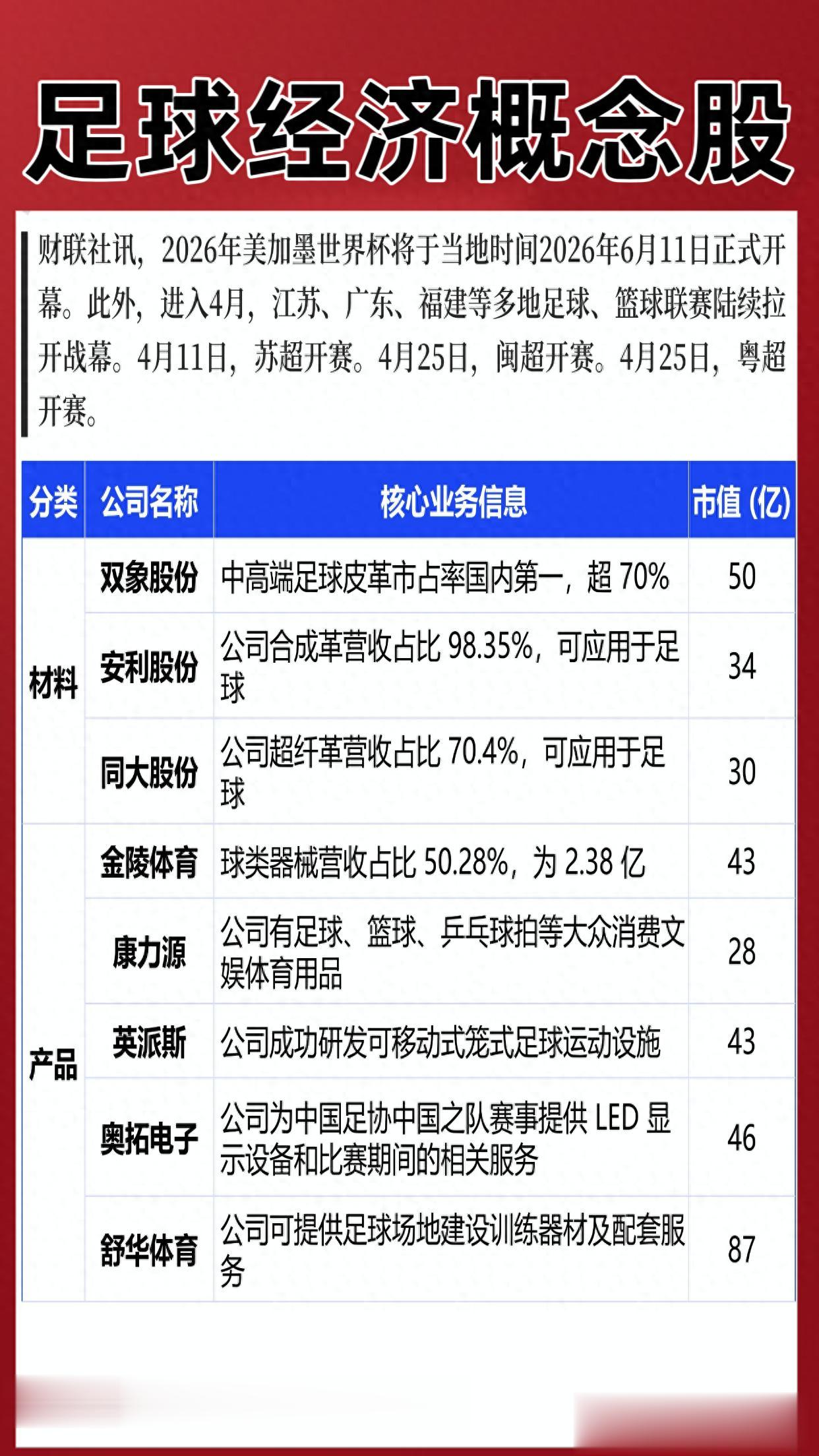 作为天天盯盘的股民,我们看球不只是为了熬夜狂欢,更是为了抓住这波实实在在的绿茵经济红利。今天我给大家梳理一下,A股里真正跟足球绑定的核心赛道,不光有我们熟悉的体育用品,还有两个容易被忽略的细分领域,含金量极高!