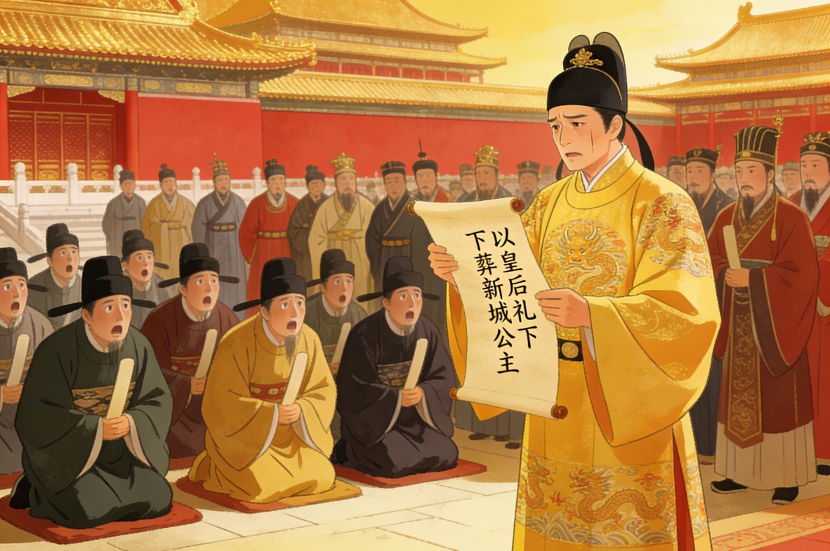这在唐朝是开天辟地头一回。公主和皇后差着天壤之别,在礼制森严、规矩大过天的唐朝,这简直是逾越礼制的惊世之举。