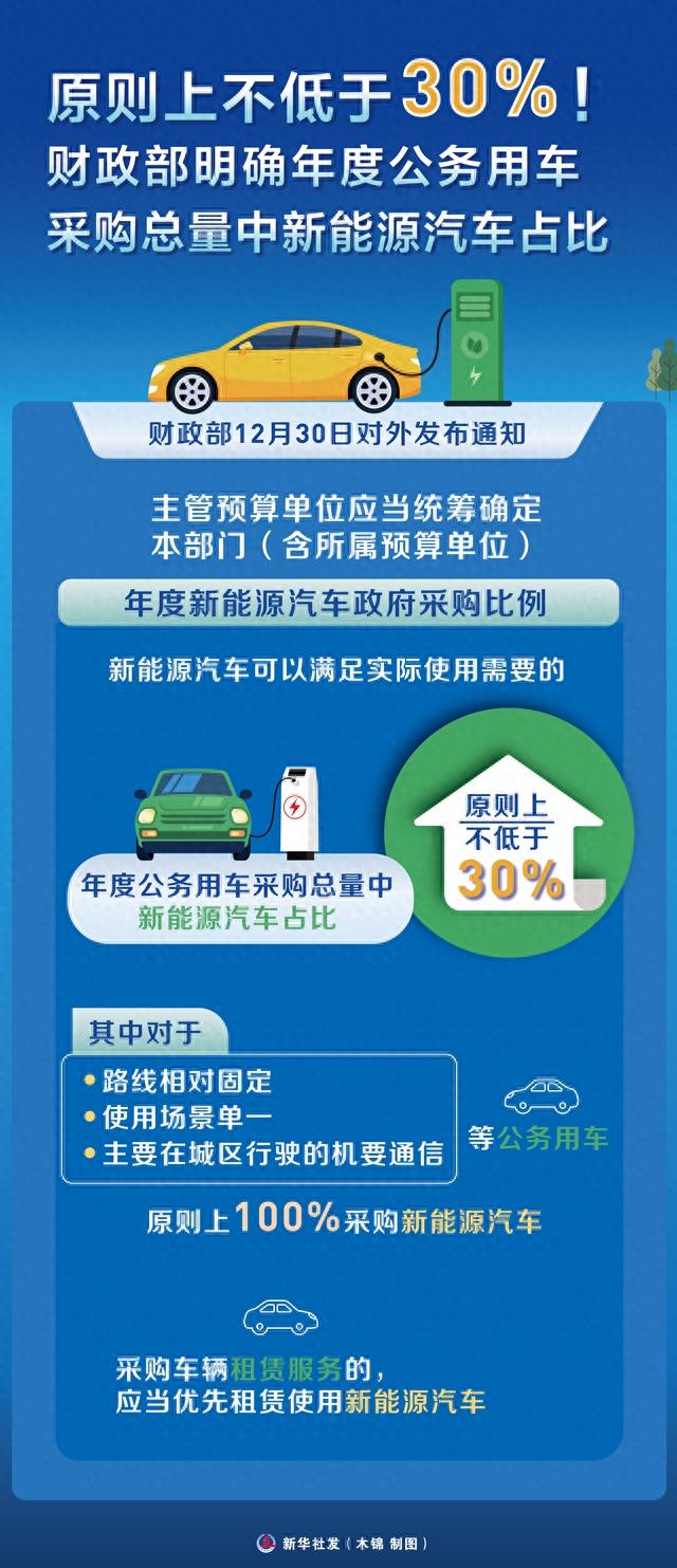 国家明确年度公务用车采购总量中,新能源车占比原则上不低于30%。